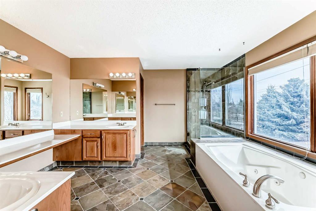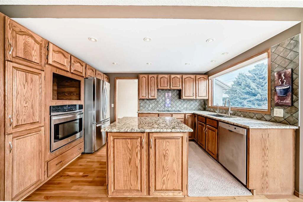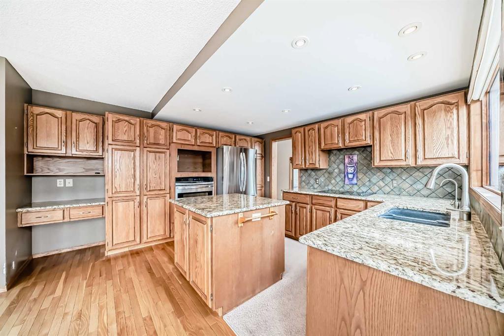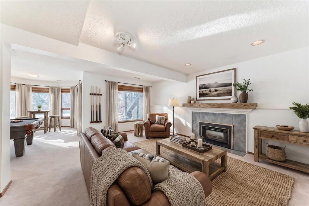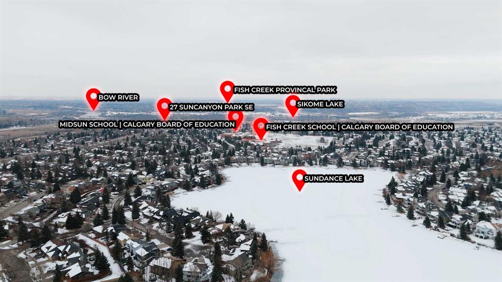 Incredible 4 bedroom 3 bathroom home with walk out basement and prime crescent location in prestigious estates area of Sundance – Welcome home to 27 Sun Canyon Park SE! The main level showcases a front living room with dramatic vaulted ceilings, formal dining room, & family room with custom built-ins and classic wood-burning fireplace – perfect for everyday living & entertaining! The bright & spacious kitchen features granite countertops, stainless steel appliances, and breakfast nook with direct access to the brand new expansive upper deck, flowing effortlessly into the casual dining area. Located just off the garage, the practical laundry and mudroom includes a dedicated dog door leading to a small, private fenced run. A two piece bathroom completes the main level. Upstairs, the primary suite is built for relaxation, offering a spacious walk-in closet with premium custom built-ins and 5-piece ensuite complete with dual vanities, jetted tub, & a glass-enclosed slate-tiled shower. Three additional bedrooms—one with a convenient 5-piece dual access ensuite—complete this level, providing plenty of space for a growing family. The fully developed walk-out basement provides versatile extra living space, featuring a family room with gas fireplace and a dedicated recreation area, all with easy access to the yard through the sliding doors. Step outside to find the expansive, sunny south-facing yard which offers total privacy with no neighbours behind. Enjoy the view from the newer upper composite deck with glass railings, or head out the back gate for direct access to the vast trail system of Fish Creek Provincial Park. Recent property upgrades include dual furnaces, dual hot water tanks, and a water softener all replaced in 2021, along with central air conditioning for year-round comfort. For those with multiple vehicles or hobbies, the oversized triple attached garage is a major standout. This prime location is just a short walk to schools, Sikome Lake, and the historic Bow Valley Ranche, while providing full Sundance Lake privileges for year round recreation. It’s more than a house; it’s a rare lifestyle opportunity in a premier lake community. Book your viewing today!
