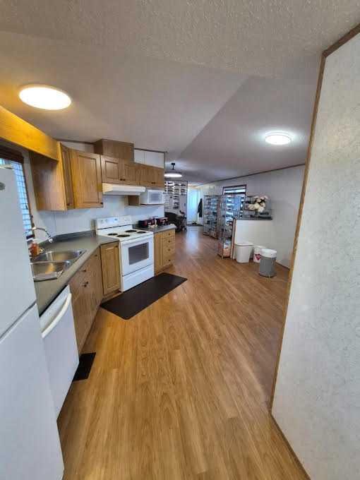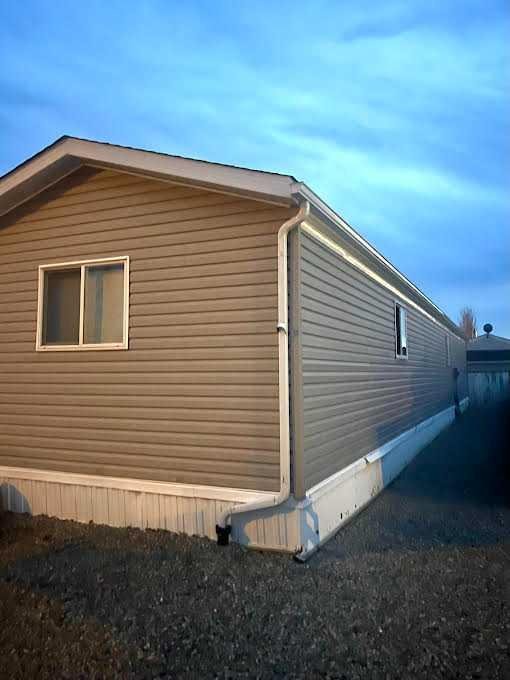 Move-in ready 3-bedroom, 2-bath home in a quiet, friendly Claresholm neighborhood. You own the land, so there are no monthly park fees. This home offers numerous updates including a dishwasher (2014), furnace (2014), half roof (2014), hot water tank (2015), AC installed brand new (2015), eavestroughs and downspouts (2025) and a new living room window (2025). A sump was installed under the lined underbelly to keep groundwater away. Enjoy a zero-maintenance yard, two decks, and two moveable storage sheds. The home will feature a new front door to compliment the new deck prior to possession. The home has been well cared for and has all updated LED lighting, newer flooring and don’t forget the AIR CONDITIONING for the hot summer days and the extra specialized insulated underbelly! ($5000). All you need to do is get packing! Close to walking paths, schools, and all the amenities you need! This home is vacant and could be yours before Christmas—schedule a showing with your favorite REALTOR® today!