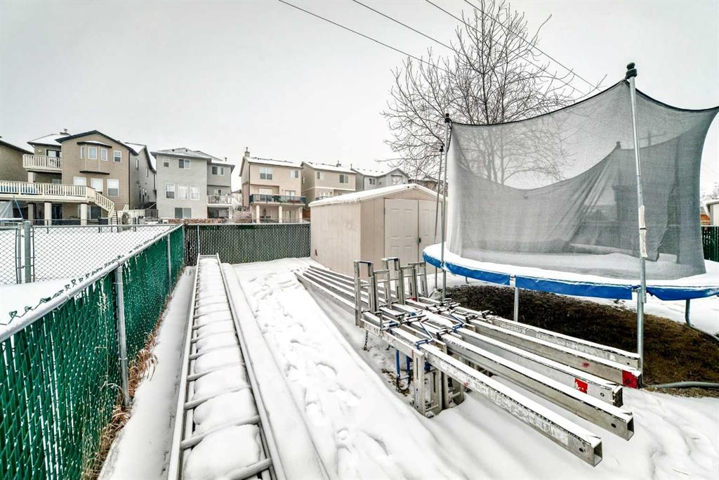 Outdoors, the generous back deck overlooks a landscaped yard filled with mature trees and shrubs, offering direct access to the greenspace behind. The home sits only steps from community picnic areas, walking paths, and three nearby schools. Coventry Hills Centre provides shopping, dining and everyday amenities just minutes away, with quick routes to the airport, Vivo Recreation Centre and Stoney Trail.