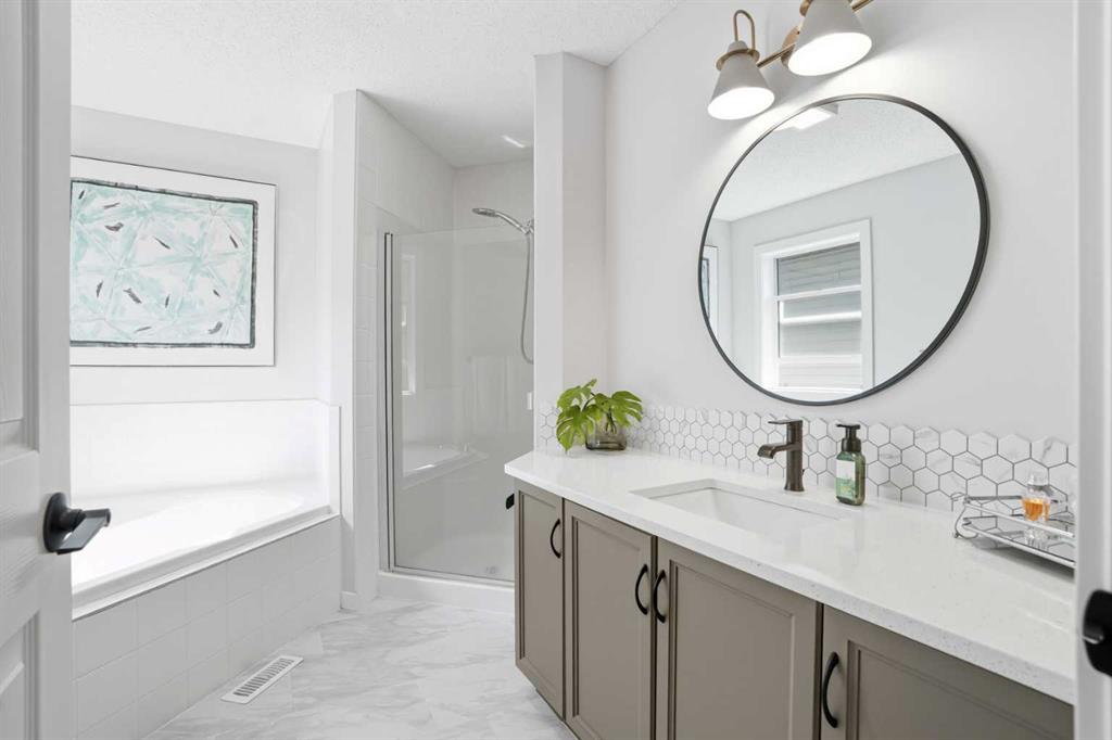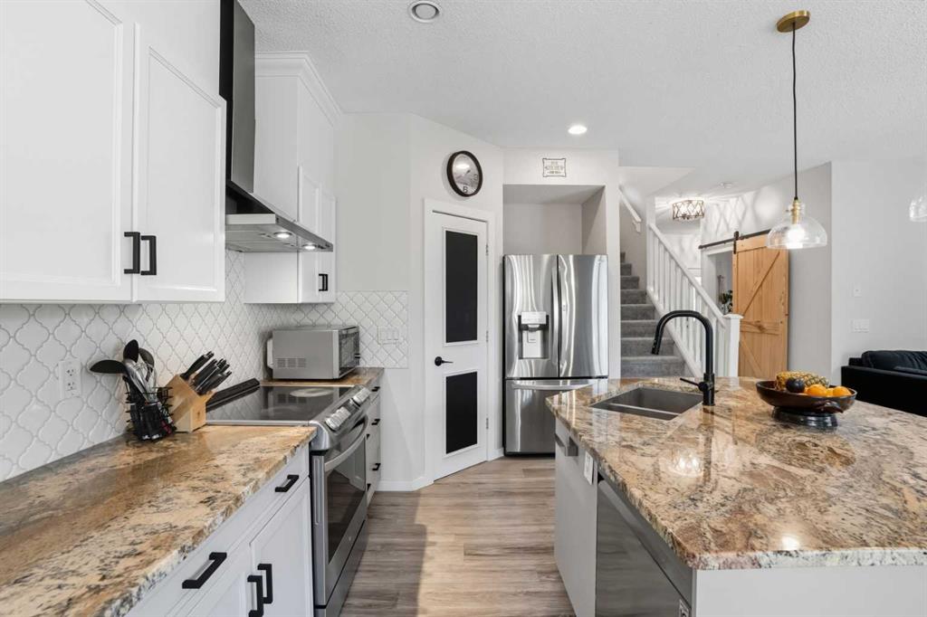 Step inside to discover a fresh, modern interior featuring elegant feature walls in the foyer, living and family rooms and the primary bedroom. There is also stunning luxury vinyl plank flooring and brand new lighting throughout. The updated kitchen is a chef’s paradise, showcasing a gorgeous backsplash, newer stainless steel appliances, granite countertops, and an open walkthrough pantry—perfect for entertaining and super practical for everyday living. The second level offers the primary suite overlooking the backyard, flanked by mature trees for the ultimate privacy. It features an attached, updated ensuite with generous counter space and a spacious walk-in closet. Additionally, there are two more oversized bedrooms, an updated family bathroom, and a huge family room with a feature wall and enhanced lighting—perfect for relaxing or entertaining. Enjoy tranquility and outdoor beauty with mature trees. The main floor deck creates a peaceful oasis to enjoy most months of the year but especially in the Spring and Summer, which is right around the corner! With every aspect freshly updated and expertly maintained, this home is move in ready . . . just bring your family!