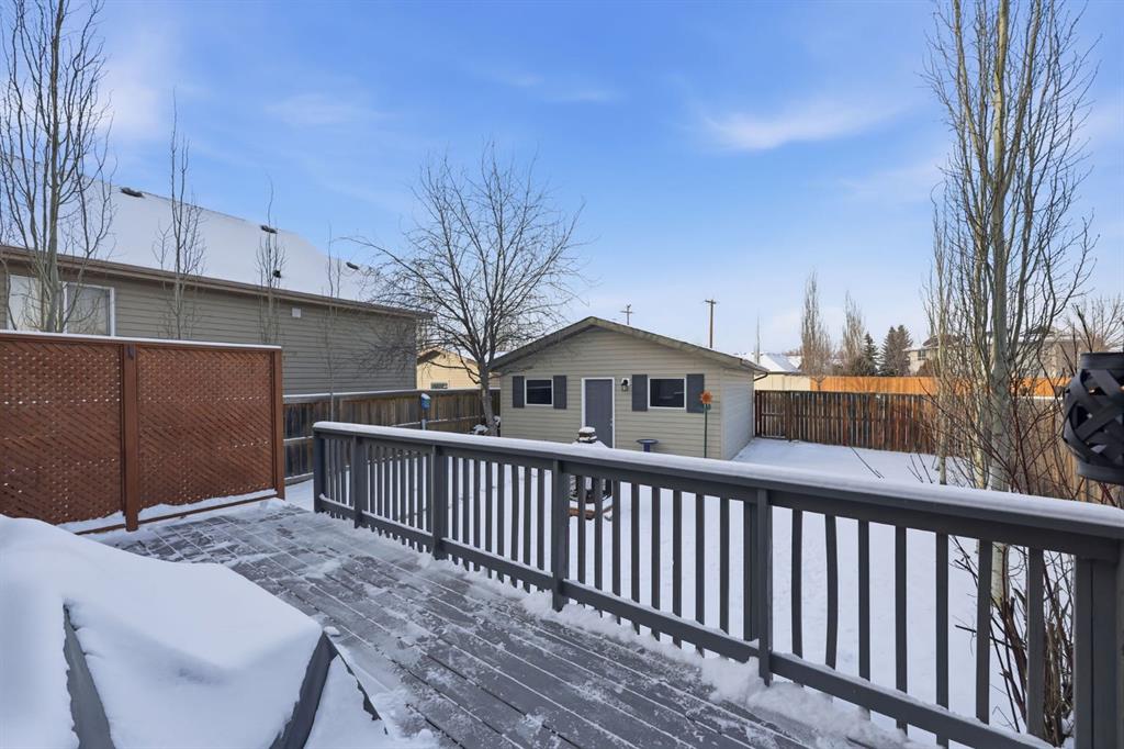 The backyard offers plenty of room for kids, pets, gardening, or entertaining, and there’s still space for the double detached garage with paved alley access. You’re also close to pathways that connect into Airdrie’s trail system and the canal.