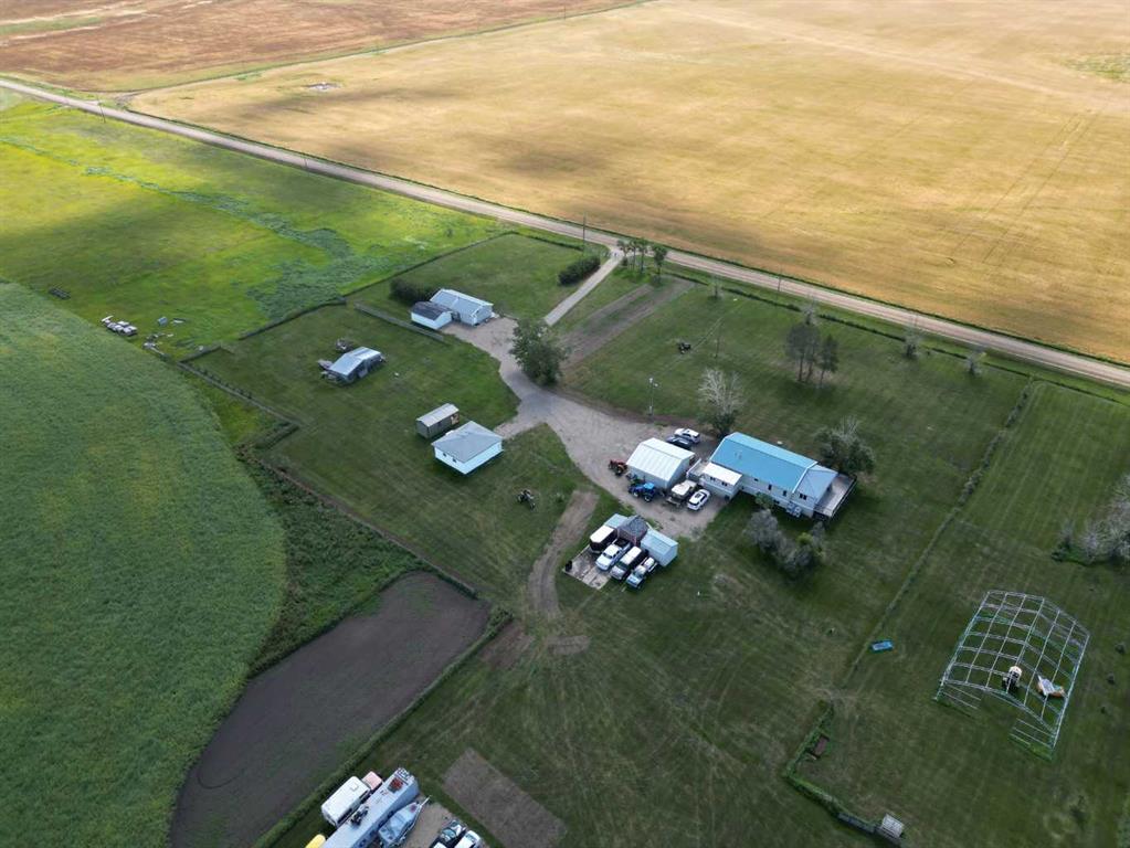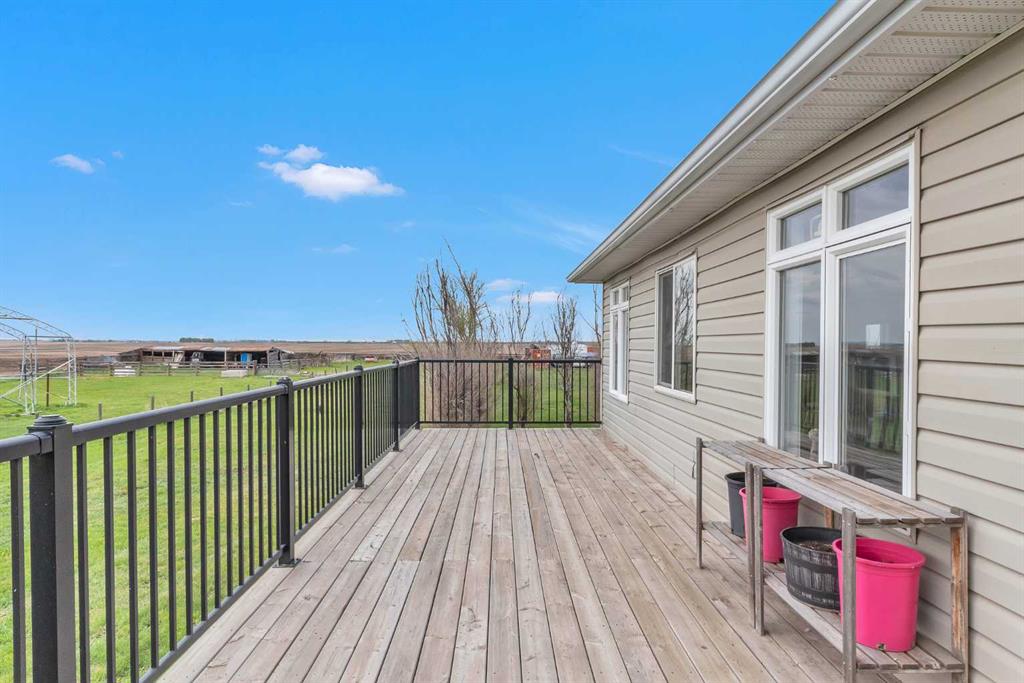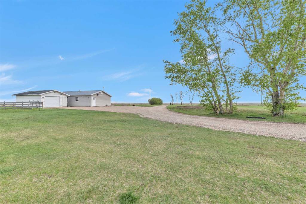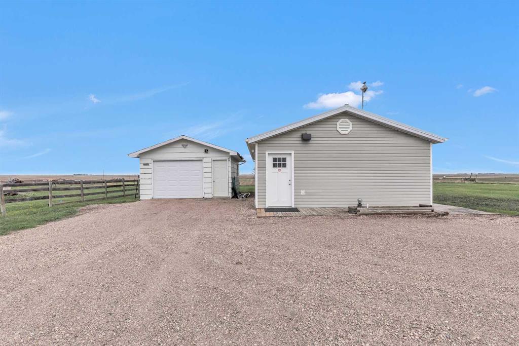 Quiet Country Living on a 10 Acre Property! Horse Enthusiasts, Hobby Farmers, Multi-Generational Families pay close attention to this acreage. 1331sqft Country Bungalow, 40’x22′ Illegal Secondary Suite Outbuilding, 2 Double Detached Garages, 1 Single Garage & 3 Sheds. The Bungalow has a vaulted ceiling over the open flowing kitchen-living-dining room & hardwood floors underfoot. Lots of counter/cupboard space & breakfast bar seating in the kitchen with newer appliances. Sunroom accessed through living room adds additional living space & has sliding doors opening up to the wrap-around deck with expansive prairie views. Mud room off the kitchen is a great transition from the outdoors. Laundry conveniently located on the main floor next to the 2pc bathroom. Primary Bedroom has 4pc en-suite bathroom & walk-in closet. In the basement; 2 bedrooms, rec room, flex room with new vinyl plank flooring, 3pc bathroom with shower. The Illegal Secondary Suite Outbuilding has a generous sized bedroom with a walk-in closet, kitchen with appliances, 4 pc bathroom, stacked washer/dryer laundry, living-dining room area. If you desire to live away from the congestion & busyness of the city then this is the property for you. Located 12km west of Beiseker, but not too far from Airdrie(27mins) to be completely isolated from amenities. This acreage is a must see.