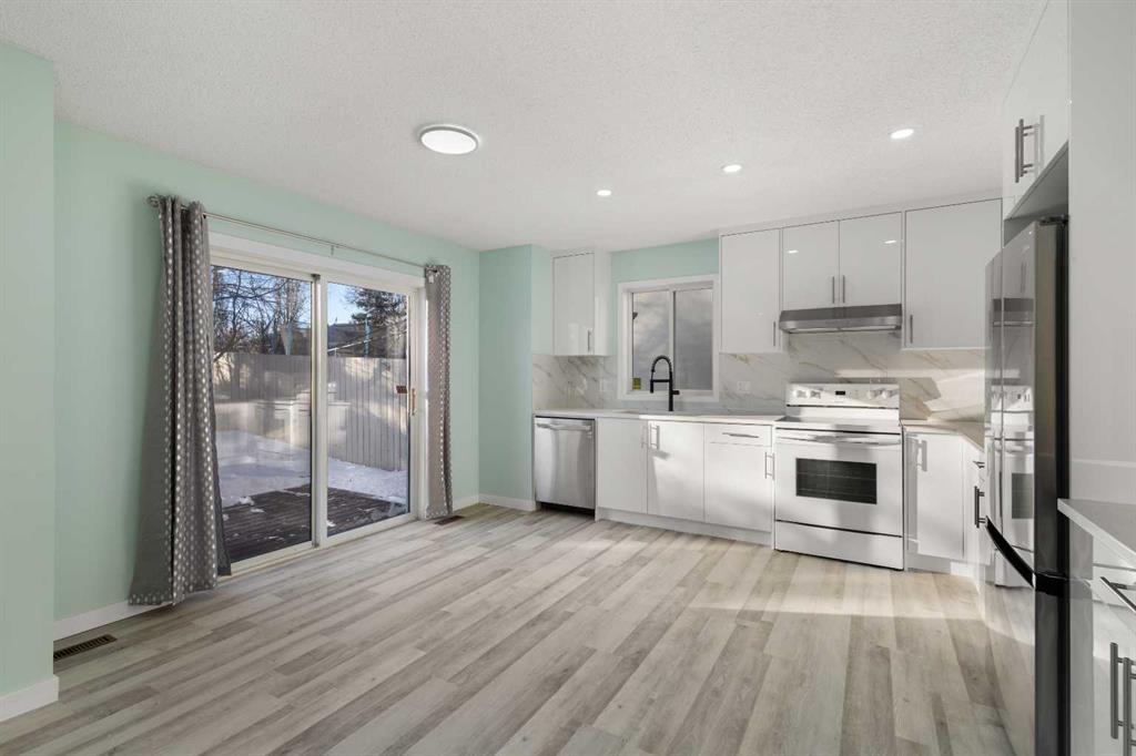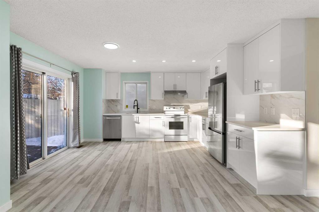 Immaculate former showhome on a quiet street in Coventry Hills with a sunny south-facing backyard. A charming front porch offers a warm welcome into the main floor, featuring a spacious foyer with a walk-in closet, a formal dining room, and a comfortable living room centered around a brick-facing gas fireplace—perfect for cozy evenings at home. The kitchen features quartz countertops and brand-new cabinetry, while the sunny nook opens onto a full-width composite deck, ideal for everyday living and casual entertaining. Main-floor laundry and a half bath add everyday convenience. Upstairs offers large windows, a relaxing primary bedroom with a 4-piece ensuite and walk-in closet, along with two additional well-sized bedrooms and a full bathroom. The developed basement provides a spacious rec room, an additional bedroom, a full bath, plus storage space. Step outside to enjoy the beautifully landscaped, south-facing backyard with mature trees, creating a peaceful outdoor retreat. Ideally located within walking distance to Northern Lights School, bus stops, and Country Hills Shopping Centre, close to all amenities with easy access to the airport, Deerfoot Trail, and Stoney Trail NW. A wonderful place to call home—move in and enjoy.