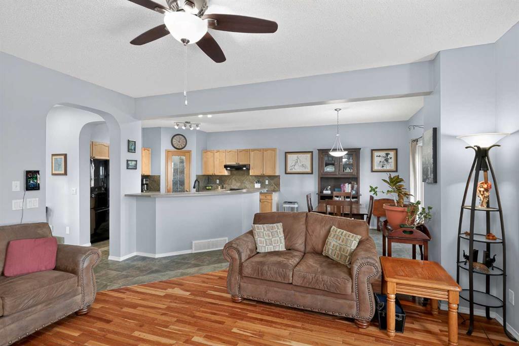 Welcome to Silver Creek. One of Airdrie’s most sought after communities. This 3 bedroom, 2.5 bathroom, fully finished home truly does have it all. Gorgeous curb appeal welcomes you as you approach the home with mature trees and a quaint garden. Entering the home you are greeted with high ceilings in the entryway, tile floors leading you into your open floor plan. The kitchen is a chef’s dream with ample counter space, newer appliances, tons of cabinetry, an island, making it the perfect area for entertaining or cooking at home with the family. The dining room is next to the kitchen and overlooks not only your north facing backyard but your expansive living room as well. A gas fireplace illuminates the living room adding a great feeling of comfort and gives you a great area for home movies or board games. Your half bathroom and main floor laundry area finish off the main level before heading upstairs. The primary suite is large enough for a king size bed as well as all of your additional bedroom furniture and features a huge walk-in closet, spa inspired ensuite bathroom and new triple pane window. The second and third bedrooms are also a great size with large closets and your 4 piece second bathroom completes the upstairs. The basement is fully finished with a massive entertainment space, office area and wet bar, perfect for game nights or having friends over. The back yard is really what sells this home. Unobstructed north views of expansive Alberta wilderness brings wildlife to your door and stunning sunrises along with peace, quiet and privacy. Sitting on your deck with a nice glass of wine or coffee in the morning will have you never wanting to leave. Airdrie is a growing city with great schools, shopping, parks, pathways and access to all of the amenities that you might need. Do not miss out on this opportunity to own this exclusive home backing on to one of the most beautiful views in the entire city.