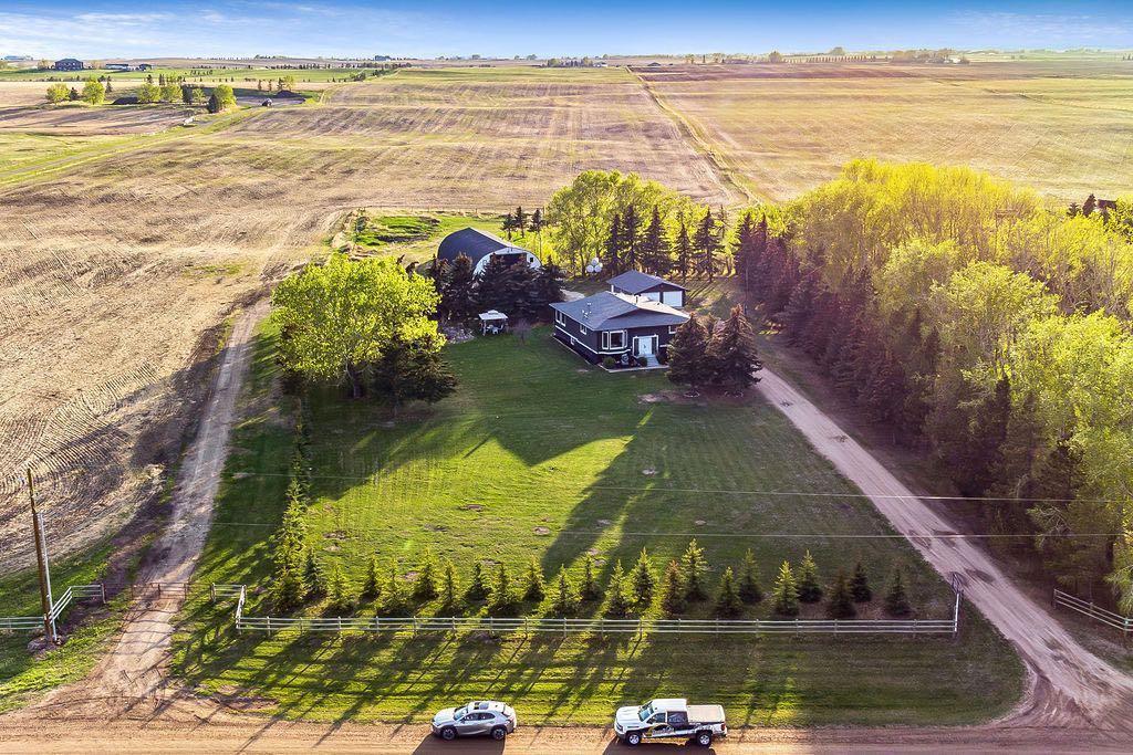 Live, work, and play on this 40 Acre parcel just minutes from Airdrie and Calgary. This beautiful property is zoned Agricultural providing endless opportunities for a home-based-business set up. Two tree-lined driveways into the property for direct access to the house/garage or the shop (Quonset). The exterior has been updated with new siding and the shingles were replaced approximately 5 years ago. A gated cul-de-sac gravel driveway leads you to the home with ample parking for the family with multiple vehicles or RV. The yard space around the home is well groomed with mature trees, planter beds and plenty of room for play or for your very own garden! As you enter the home you’re greeted with a BRIGHT SUN ROOM with loads of windows & great outdoor patio space overlooking your private oasis. Fully finished Bi-level with 5 Bedrooms + 3 Bathrooms + Upgrades Galore + FULL ILLEGAL SUITE with private entrance to the basement. A perfect mother-in-law suite (Illegal, subject to approval and permitting by the city/municipality) or mortgage helper with a tenant/longer term guest. The home offers a spacious layout and plenty of room for the growing family. The main floor has 3 bedrooms and 2 full bathrooms. Large open concept kitchen with MASSIVE ISLAND, full set dining area and plenty of cupboard/counter space. Functional and bright living area with gas fireplace and again loads of natural light. A spacious primary bedroom with great views of the mature surroundings. An ultimate entertainment space in the Basement; full kitchen, TV area, flex room which can be used as an office or home gym, 2 more good-sized bedrooms, full bathroom and endless storage. There have been many recent upgrades including new tile and backsplash in the kitchen and bathrooms, granite countertops, huge butcher block island with storage, appliances, new tubs and toilets, all new windows in the lower level, new furnace and more! Beautiful vinyl planks are also new throughout the entire home. Limitless windows allow in plenty of natural light and spectacular views from all directions! The property is fully fenced, offers an outdoor firepit, SPA/HOT TUB with covered roof and multiple outdoor sitting areas. The property also has a 40′ X 80′ heated Quonset with an office/bathroom and heated floors. A 24’ x 34’ double detached heated garage with a workshop. The property features a new septic system for years of worry-free ownership, also a well offering a good flow rate. This gorgeous turn key farm is waiting for you! Just some of the other great features include: New septic tank, new additional 200-amp pole, 3 x 300-gallon fuel tanks, poured concrete walking paths & more. This is an ABSOLUTE MUST SEE! If you’re looking for a property with income earning potential, a place to live and work in an unbeatable location this is the one for you!