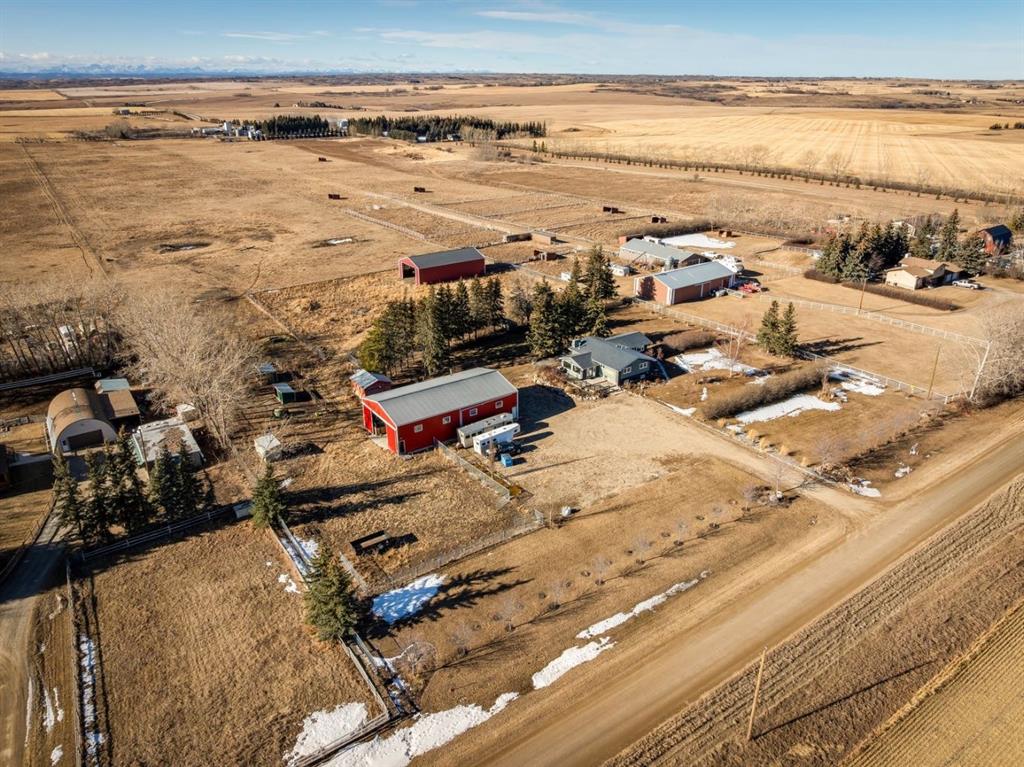 Proud, Long-Time Owners present this charming CUSTOM BUNGALOW + HEATED SHOP + 2nd BARN & on 19.89 Acres! Located 10 mins WEST from Airdrie & boasting UNOBSTRUCTED COUNTRY VIEWS. A RARE FIND with this HOBBY FARM tucked into nature with 360-degree views & the most gorgeous sunsets on a daily basis. This property boasts an Oversized detached HEATED SHOP (40’ x 72’ / 3-12’ Shop Doors / 14’ Tall), Gorgeous DECK with shelter belt of MATURE TREES & an impressive floor plan for the growing family. Eye catching curb appeal as you approach with stucco/stone exterior and 100 year upgraded roof! Nearly 3,200 sq ft of living space in this sprawling 4 bedroom (3 beds up), 3 bathrooms + flex room. Tons of windows through both the main and lower levels ensure plenty of sunlight spreads throughout these open plans. Greeted with a spacious living room with a feature gas fireplace & expanding into your newer kitchen/dining space with access to your private oasis. Highly upgraded chef’s kitchen with quartz counters, stainless appliances & ample prep space or hosting guests. Steps away is the primary retreat with plenty of room for a full bedroom set, full en suite & storage. 2 more generous bedrooms and a second bathroom is ideal for the everyday hustle and bustle. A ONE-OF-A-KIND SUNSHINE ROOM with an entire wall of built-in cabinetry is sure to impress! This home comes equipped with a central vac system, UPDATED; furnace, HWT, windows, shingles, electrical, plumbing, kitchen, bathrooms, LVP flooring (with areas having IN-FLOOR-HEAT) are just a few more noteworthy features. Partially developed basement is host to your 4th bedroom, a wonderful rec room with a flex room (home gym/theatre), another full bathroom & lots of storage space/workshop. A second 72’ x 40’ HAY SHED is perfect for a family with plenty of toys to store away from the elements. Multiple shelters, water hydrant, cross fencing, storage sheds, 3 paddocks & more for those horse/farm animal enthusiasts! Tons of trees in your very own secluded backyard. Picturesque views in all directions featuring grasslands, abundant wildlife and truly a very tranquil setting. Zoned as Agricultural, this property is much more business friendly than the average country residential acreage property. Only a short drive to all amenities & schools. Book your private viewing today to truly appreciate every piece of this property.