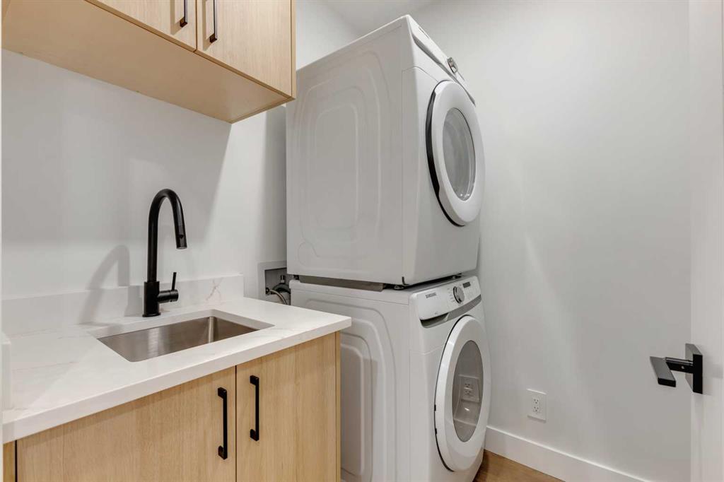 LOCATION LOCATION! Built on a quiet street only steps to West Confederation Park, this BRAND-NEW, MOVE-IN READY semi-detached infill in Banff Trail offers a superb floorplan with a LEGAL BASEMENT SUITE (approved by the city). Banff Trail is well-situated in inner-city NW, with lots of outdoor recreation, schools, & shopping nearby. Confederation Park & the Charleswood Tennis Courts & Splash Park are a quick walk down the street, the City of Calgary toboggan hill is only 6-mins away, and the Confederation Park Golf Course is only 10-min down the road; a quick 9 holes after dinner can be a weeknight reality! Banff Trail School is mins away & Calgary Montessori School, Branton School, Rosemont School, and St Francis High School are all close by, with SAIT & UofC a short bike ride away. Dining options, shopping, amenities, and more are all at your fingertips, with Banff Trail, North Hill Centre, and all the businesses along Crowchild easily accessible from this inner-city location. With an amazing layout & premium finishes, you’ll discover a beautiful blend of both a stylish & functional lifestyle. This home features several upgrades, including engineered hardwood & 10-ft ceilings on the main level, soaring ceilings on the upper floor & a fully-developed basement w/ a LEGAL SUITE (approved by the city). The main floor boasts large primary living spaces, including a main floor home office, a bright front dining room w/ built-in buffet, a large central kitchen with an oversized island w/ bar seating, ceiling-height custom cabinetry, and built-in pantry & coffee station. The large rear living room is finished w/ an inset gas fireplace w/ modern full-height surround, built-in millwork, and large windows overlooking the SOUTH back patio – perfect for family gatherings! A rear mudroom hosts a bench with hooks, with direct access to the double detached garage and an elegant, private powder room. Upstairs, you’ll find the two secondary bedrooms w/ built-in closets, a spacious laundry room and a main 4-pc bath w/ modern vanity and a tub/shower combo w/ full-height tile surround. The primary suite features a soaring vaulted ceiling, multiple tall windows for tons of natural light, and a large walk-in closet w/ built-in storage. The 5-pc ensuite shows off with heated tile floors, glass shower w/ full-height tile, a free-standing tub, a modern vanity, dual undermount sinks, and a separate water closet. The fully-developed LEGAL BASEMENT SUITE (approved by the city) enjoys private access through a secure side entrance, a generously-sized bedroom w/ walk-in closet, a spacious and contemporary 4-pc bath w/ modern tile & vanity, large windows, private laundry w/ washer & dryer, plus a large living room area with a stunning built-in media centre & storage! The kitchen is thoughtfully arranged with quartz countertops & full-height cabinetry, w/ bar seating for even more room for you or your tenants! It’s a house you’ll easily call a home, in a location that just cannot be beat!