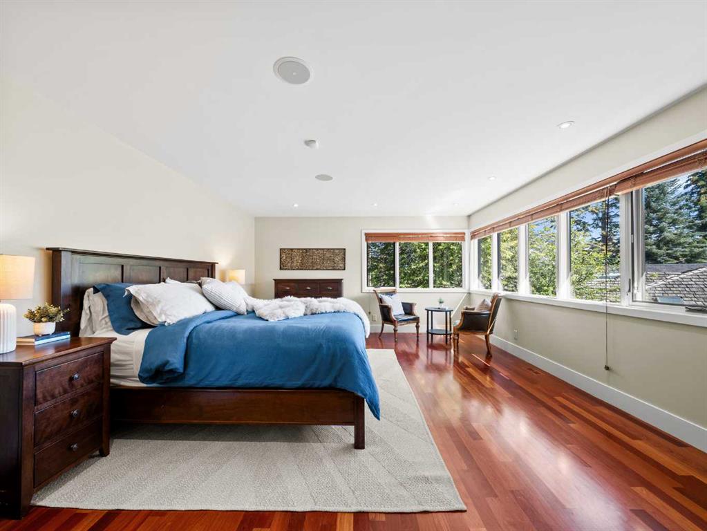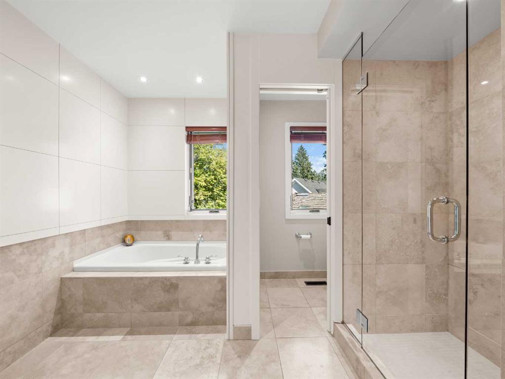 Upstairs, four generous bedrooms provide a rare advantage in this neighbourhood. The primary suite features treetop views, a spa-style ensuite with heated floors, and a HUGE walk-in closet. A secondary bedroom enjoys a private ensuite, while two additional bedrooms share a five-piece bath.
