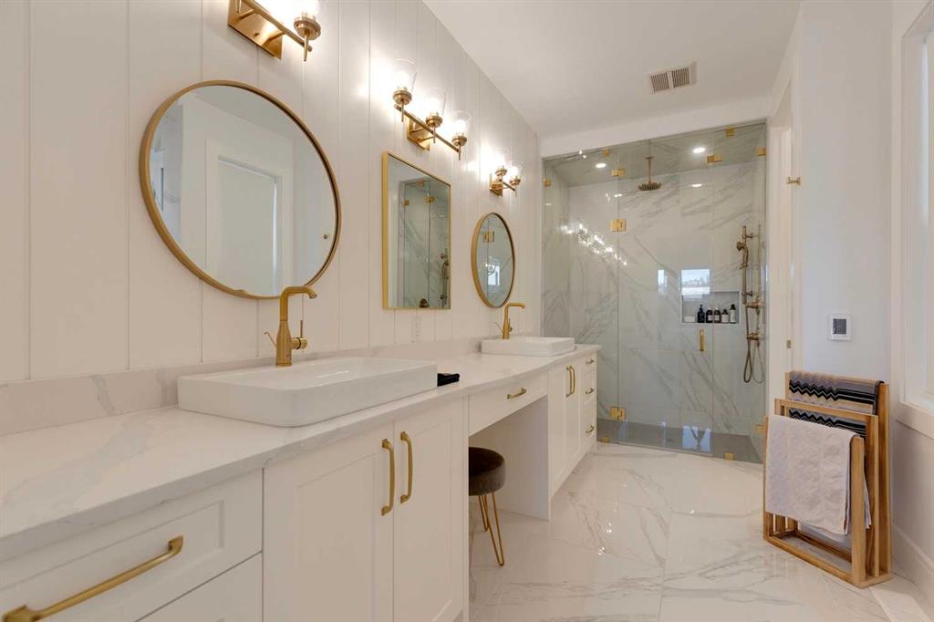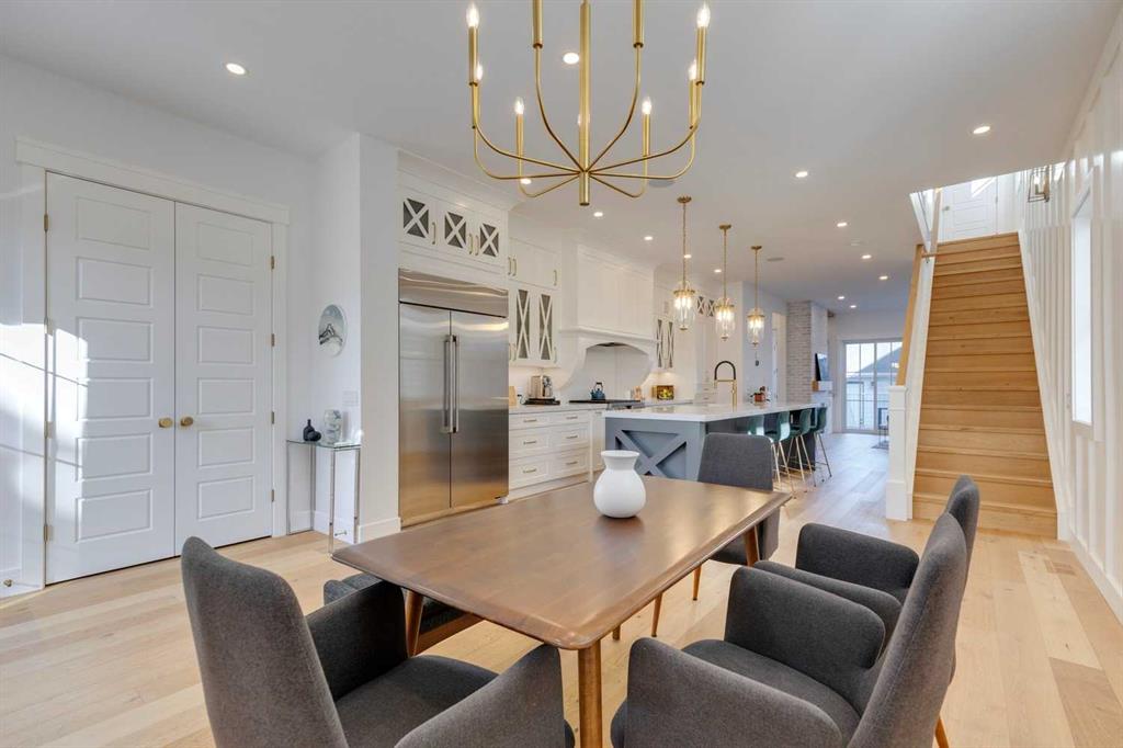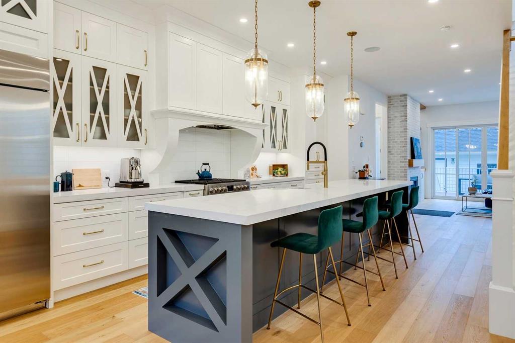 OPEN HOUSE OCT 18th and 19th 2-4pm! Experience refined inner-city living in this beautifully crafted modern home by Palatial Homes, a well-respected builder known for quality craftsmanship in the community. Offering over 2,600 sq. ft. of developed living space designed for today’s lifestyle, every detail has been thoughtfully curated from the wide-plank engineered hardwood floors and 8’ doors to the expansive windows that flood the home with natural light. The main level strikes the perfect balance of style and function, anchored by a gourmet chef’s kitchen featuring a large quartz island, ceiling-height cabinetry, and a Fulgor Milano gas range for the passionate cook. The adjoining living room invites relaxation with its sleek gas fireplace, built-in shelving, and sliding glass doors that open to a private back deck with metal railings perfect for summer evenings or weekend gatherings. Upstairs, you’ll find three spacious bedrooms, including a peaceful primary suite with a beautiful walk-in closet and a serene spa-inspired ensuite featuring dual vanities, a freestanding soaker tub, heated floors, and a large glass-enclosed shower. Two bright bedrooms share a sleek full bathroom, while the convenient upper-level laundry adds an extra touch of everyday ease. The fully developed lower level provides flexibility for your lifestyle, complete with a large recreation area, wet bar, fourth bedroom (could also be utilized as home gym or office), and a full bathroom. The home is equipped with central air conditioning for year-round comfort and roughed-in in-floor heating for added warmth during the winter months. Perfectly situated within walking distance to top-rated community schools, just steps to Helicopter Park, the Bow River pathway system, shopping, restaurants, and Kensington, this home is a rare find. West Hillhurst is known for its friendly neighborhood spirit, outdoor swimming pool, skating rink, and active community association offering events, programs, and sports such as soccer, hockey, and pickleball. With quick access to downtown, Foothills & Children’s Hospitals, the University of Calgary, and major roadways, this home truly offers inner-city living at its finest.
