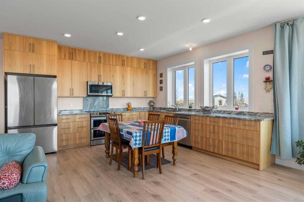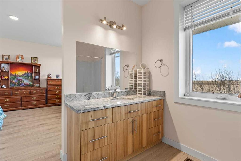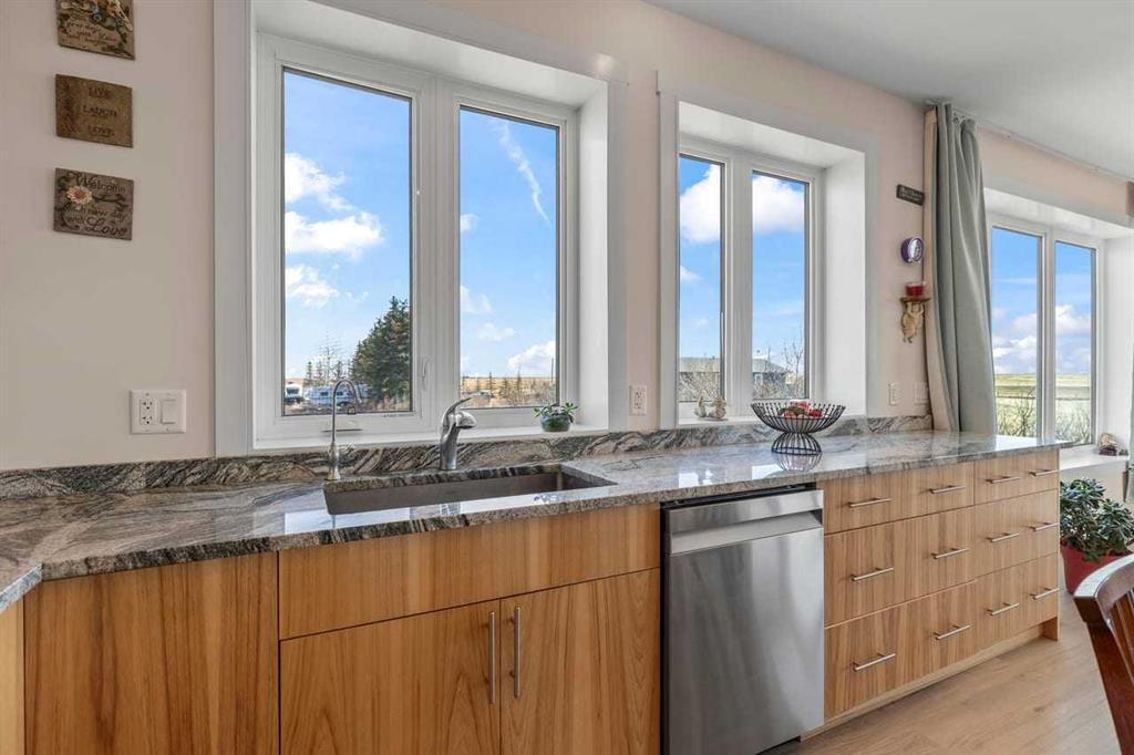 This is the acreage opportunity you’ve been waiting for! Built in 2022, this nearly 2,000 sq. ft. bungalow sits on 2.06 acres and offers the perfect combination of modern construction, space, and future potential. Constructed with ICF for superior durability and efficiency, this home features in-floor heating, 9’ ceilings, and oversized windows throughout—flooding the space with natural light. The modern kitchen anchors the open-concept layout, ready for both everyday living and entertaining. With three spacious bedrooms, tons of storage, and a foam-insulated garage, the foundation is here for something truly special. The home is move-in ready but offers an excellent opportunity for a buyer to add their own personal touch and elevate it to the next level. The fully developed basement includes an illegal suite with two separate units—perfect for extended family or added income potential. Outside, the possibilities continue with 2.06 acres of land and approval already in place from Rocky View County to build a workshop—ideal for hobbyists, business use, or additional storage. If you’re looking for space, value, and upside potential, this property delivers. Don’t miss your chance to make it your own.