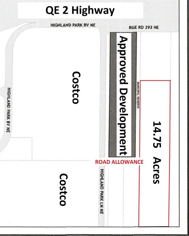 14.75 Acres in City of Airdrie on Pavement and Adjacent to Costco Warehouse. Alberta is Back and Opportunity knocks! This 14.75 acre property is located on paved Hamilton Boulevard in a prime location for future development. Ideally this property would be of interest to someone wanting to build a home for large or extended family, with possibility for home based business (by permit), and hold until the City continues development in the area. A recent Industrial Business and Direct Control development has been approved on the adjacent property to the south with future road allowance from Highland Park Lane directly to the middle of the 14.75 acre Property. This property is on pavement adjacent to Executive Custom Home Acreages and north of Highland Park (home to the Costco Wholesale Distribution Centre, Cam Clark Ford, UFA, TransCanada Turbines), with quick easy access via Hamilton Boulevard to Highway 567, QE II Highway and the North Service Road to flow freely between Calgary, Airdrie and northern Alberta. Only 15 minutes from Calgary International Airport, and 10 minutes from Cross Iron Mills in Balzac. The City of Airdrie offers a diverse young skilled labour force, excellent restaurant and lifestyle amenities. Currently zoned Rural Residential-4 with fenced perimeter, and Phase I Environmental Site Assessment is completed. Dimensions are more or less 330 feet wide X 1,952 feet deep. The local area includes existing executive acreage homes and some commercial development including RV storage, RV repair, Direct Control businesses, and the new Airdrie Regional Park is nearby. Come and check out the possibilities for you. GST applicable.