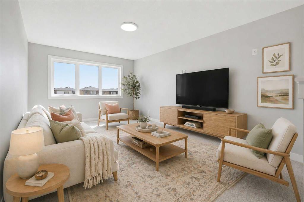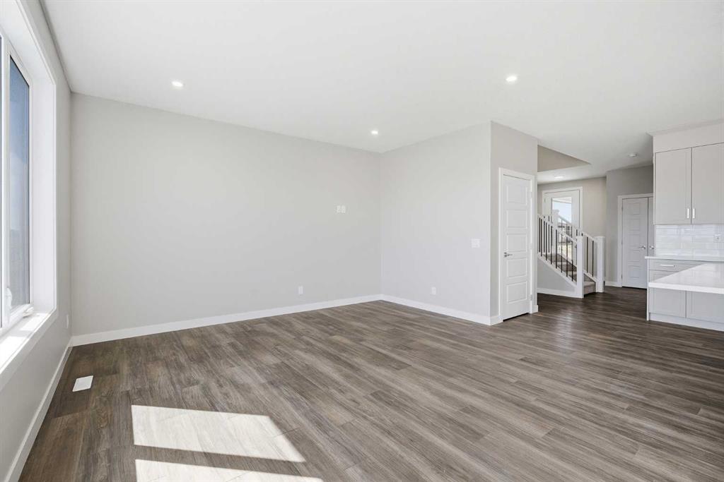 Welcome to this brand new duplex in the sought-after community of Dawson’s Landing in Chestermere, offering exceptional curb appeal and thoughtful design throughout. From the moment you arrive, you’ll appreciate the large attached double car garage and modern exterior finishes that set this home apart.