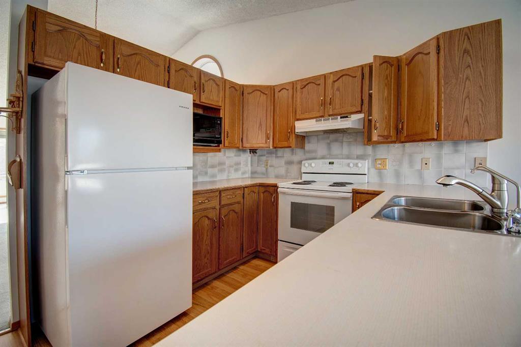 Rare opportunity in adult community in Airdrie! Situated on a CORNER LOT next to Wooside golf course, this property has a gret layout and is on a fantastic lot. The Woodside COMMUNITY has lots of amenities and activities for the senior population! There is a clubhouse for the community a block away that hosts events throughout the year. The community also offers SNOW REMOVAL AND LANDSCAPING for a reasonable monthly charge. Upon entering you are greeted by VAULTED CEILINGS in the living room and an open floor plan. Thanks to the vaulted ceilings and strategically placed windows, the interior is lots of natural light. The living room also has a gas fireplace as a focal point. The open layout of the living spaces, combined with the seamless flow between indoor and outdoor areas, makes this home perfect for hosting gatherings and entertaining guests. The primary bedroom features an ENSUITE BATHROOM . The secondary bedroom is spacious and there is an additional 4 pce washroom. The ATTACHED DOUBLE GARAGE, provides ample space for vehicles and storage. There is a plenty of additional parking on the large driveway as well as the road. The finished basement offers additional living space, perfect for a variety of uses such as a recreation room, home office and offers a 3 pce ensuite. The HUGE backyard features a 12 ft long deck as well as a SHED for storage. The IN-GROUND SPRINKLER SYSTEM (“as is” as it has not been used in a couple years) offers added convenience. The appliances are newer, the blinds are 3.5 years old, the windows upstairs were changed in 2016, the shingles were changed in 2014. This property is a short walk from Woodside Golf Course. Conveniently located a short drive from Sobeys, Shoppers Drug mart, Original Joe’s Restaurant and many other amenities. At least one of the residents MUST be over 55 years old and no residents under 18 years old. This really must be seen to be appreciated!