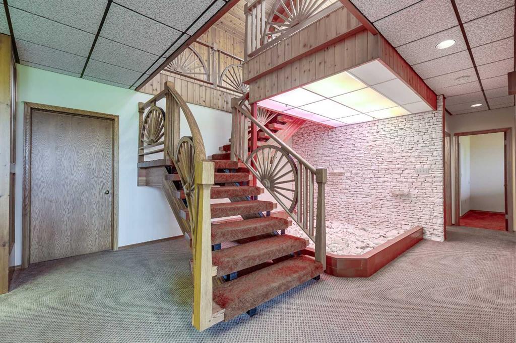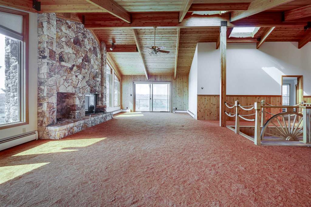 A once-in-a-lifetime opportunity on the iconic Jack Rabbit Trail! This extraordinary property offers a rare chance to own a piece of Alberta’s ranching legacy, complete with breathtaking, unobstructed valley and mountain views, and a charming, period ranch house full of character. Set on a proposed 10 +/- acre parcel (subdivision in progress), the property is the perfect blend of privacy, potential and character. The home is wrapped in mature, thoughtfully designed landscaping planted in 1979. A security gate with ¼-mile paved driveway leads to a bungalow that captures the essence of country living. The 2,260 sq ft main floor (over 4,500 sq ft of total living space) is highlighted by beautiful stone exterior accents, vaulted ceilings, and generous proportions throughout. The home features 5 bedrooms and 3 full bathrooms, with a layout designed for both function and comfort. The kitchen is bright and spacious, featuring a large island, ample cabinetry and counter space. A large dining area and expansive living room offer ideal space for gatherings. The center field stone fireplace adds warmth and rustic charm while the unique touches like the wagon-wheel staircase, solid woodwork, and original design elements bring a timeless, one-of-a-kind feel. Also on the main floor: a office, separate laundry room, and the primary bedroom with an updated ensuite, plus one additional bedroom. Downstairs, the fully developed lower level offers three more generous bedrooms, a large recreation room with a snooker table (included), another wood burning fireplace, and plenty of storage. The outdoor living is equally impressive, with both a southwest-facing deck and a welcoming east-facing front porch complete with pergola—ideal for relaxing mornings or evening entertaining. For the hobbyist or car enthusiast, the heated and drywalled 4-car garage is fully equipped with built-in shelving and workbenches. The remainder of the acreage is pasture land and will be fully fenced. Whether you’re looking to restore the home’s original beauty, modernize it with a fresh vision, or create a custom estate that bridges past and present, this property offers unmatched potential, privacy, and views—all just minutes from Airdrie amenities, 45 minutes to downtown Calgary yet worlds away in peace and charm.
