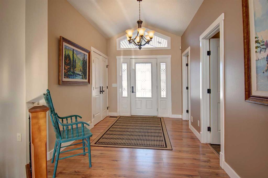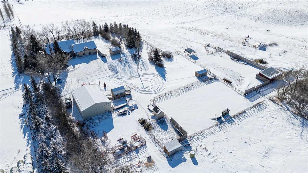 OPEN HOUSE SATURDAY FEBUARY 28, 2026 from 1-4pm! Amazing opportunity just outside of Airdrie! This 31.78 +/- acre very private and sheltered country retreat must be seen! Upon entering the 1,905+/- WALK-OUT BUNGALOW you are greeted by hardwood floors, huge windows, VAULTED ceilings, pot lights, and a very open layout. The gourmet kitchen is includes custom cabinetry, a large breakfast bar, upgraded counter tops, stainless steel appliances, and loads of storage. The living room is very spacious and offers a stone covered gas fireplace as a focal point. The primary retreat is huge with big windows and a spa like 5 pce ensuite featuring a jetted tub, walk-in shower, and a fantastic closet. There is a secondary bedroom on main floor currently being used as an office. Completing the main floor is a huge laundry/mudroom that leads to the triple attached heated garage that has enough space for your vehicles and toys. The lower level is fully finished with in-floor heat and offers three additional bedrooms, a wet bar, and a great sized recreation /games room. Outside you will find a small barn and a 36×48 shop with an overhead door with additional storage (both with power). There are 10 acres +/- of newly seeded hay/pasture land and an insulated chicken coup/shed. The yard is beautifully landscaped with fruit trees, berry bushes and perennials. The exterior of the house has programmable LED lighting recently installed as well! This property really must be seen to be appreciated! Call for more details or to schedule a private viewing.