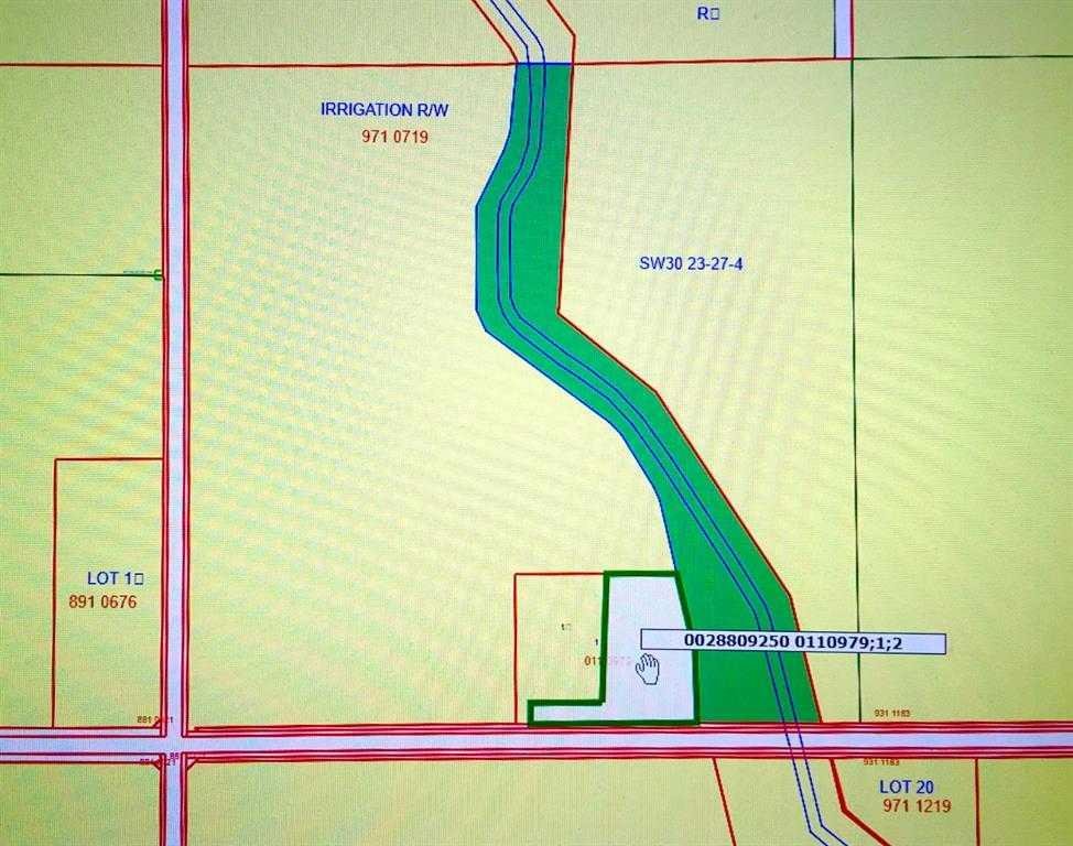 Stunning 5.06-Acre Parcel for Sale – Zoned R-RUR (Residential Rural) This beautiful flat acreage offers a rare opportunity to own 5.06 acres of prime land backing onto open pastureland and siding the Western Irrigation District canal. The property features mature tree-lined boundaries, providing privacy and a picturesque setting. Key features: Private water well + canal water access, Ideally situated near the corner of Hwy 791 and Glenmore Trail SE, offering easy access, Level land – ready for development or a dream home build, Shared Driveway Entrance, water well report and chemical analysis report. Don’t miss this exceptional opportunity to invest in a peaceful rural lifestyle with all the advantages of nearby infrastructure.