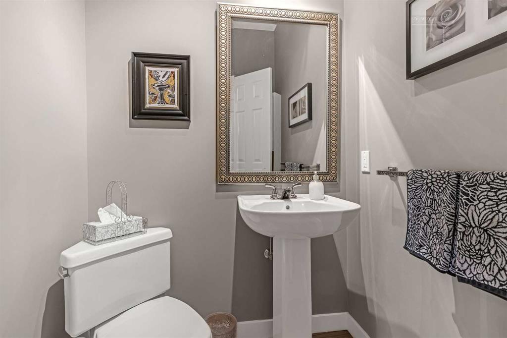 The primary bedroom fits a king-sized bed easily and includes a walk-in closet and a 4-piece ensuite. A 2-piece powder room completes the main level.
