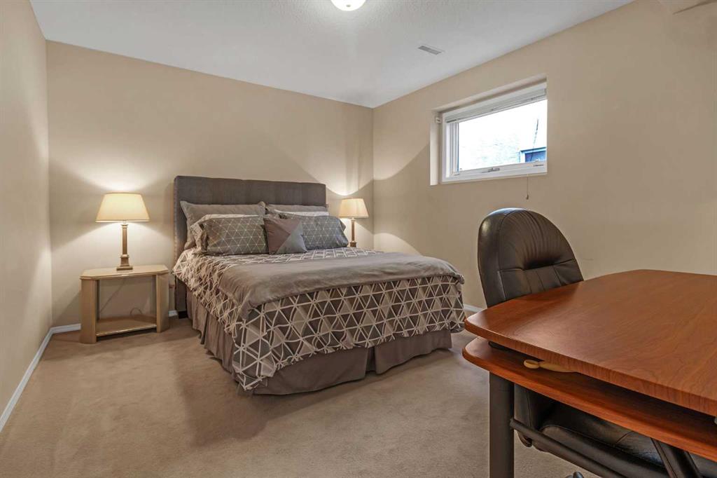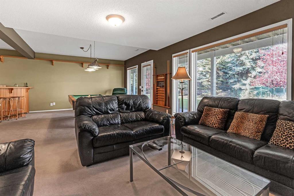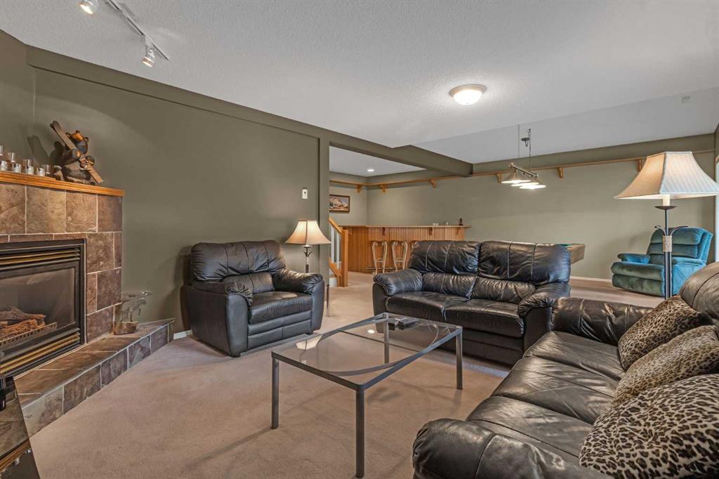 The fully developed walkout basement with in-floor heat expands your living space with a second fireplace, TV area, games area, and bar—ideal for entertaining or extended stays. A second bedroom and full 4-piece bathroom finish the lower level.