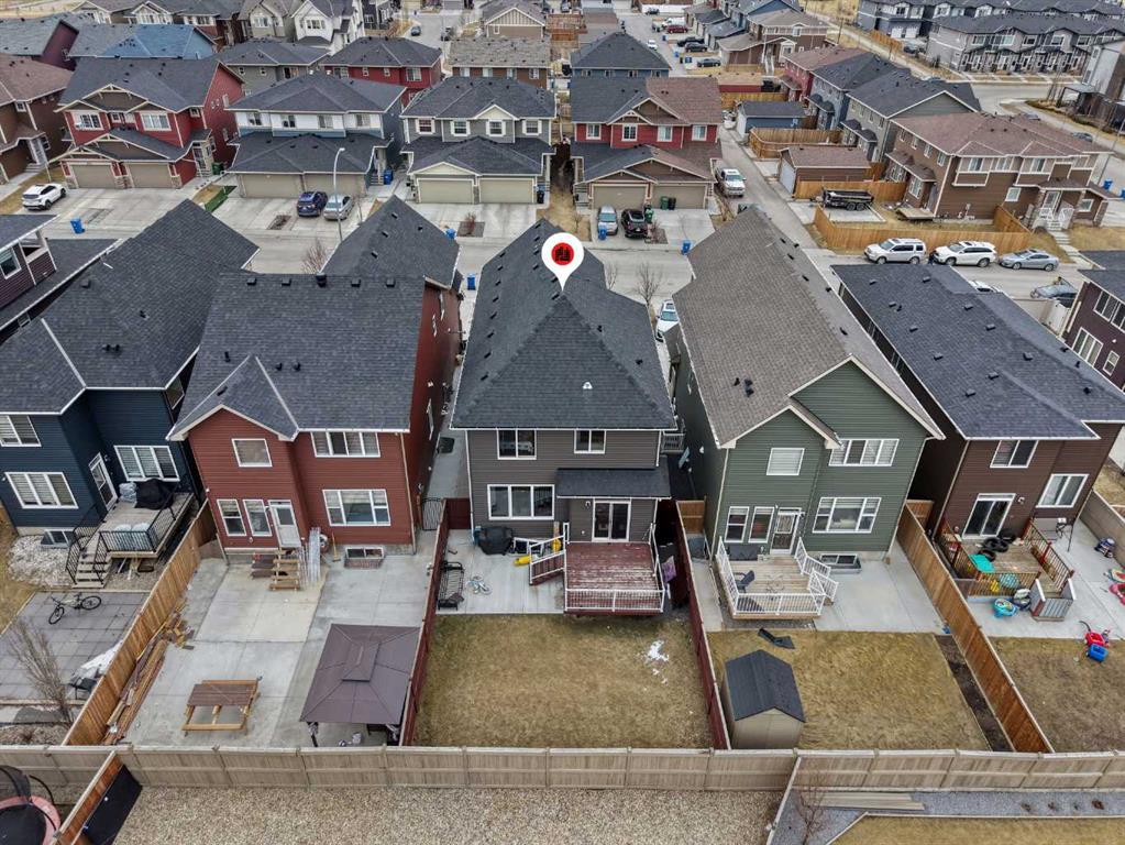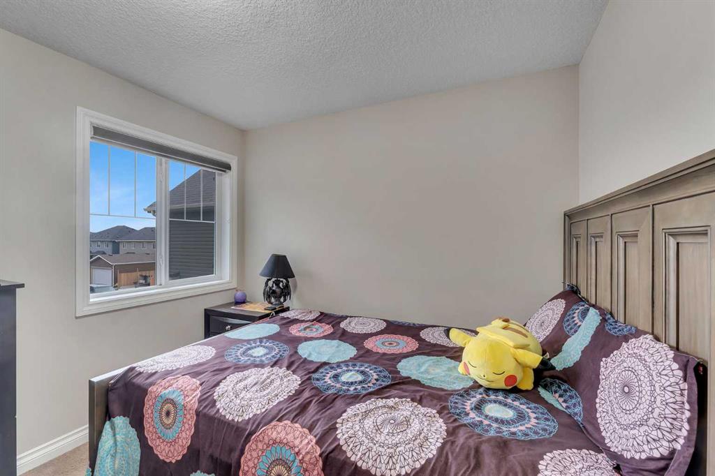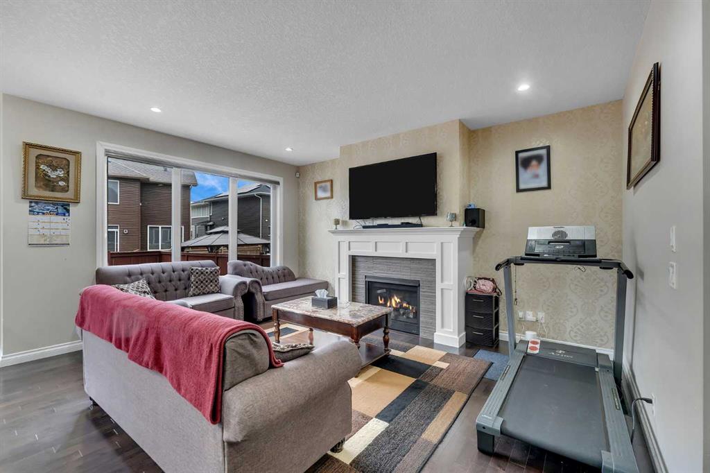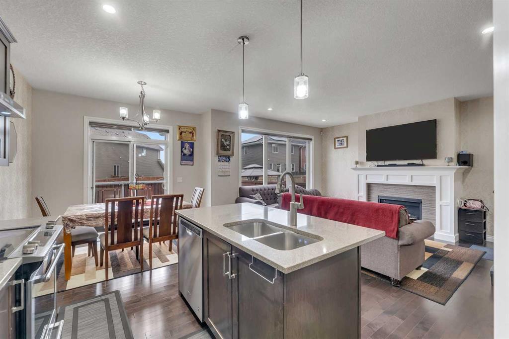 Show-home quality in the heart of Saddle Ridge! Welcome to this beautifully presented and impeccably maintained 2-storey residence offering 2,024 sq ft of refined living space on a 3,592 sq ft lot. Thoughtfully designed with both elegance and functionality in mind, this stunning home features 4 spacious bedrooms, 3 full bathrooms, and a bright upper-level bonus room, perfect for today’s modern family lifestyle. From the moment you step inside, you’ll be impressed by the sun-filled open-concept layout, enhanced by large windows, tasteful finishes, and warm contemporary tones throughout. The inviting main living area is anchored by a stylish fireplace, creating a cozy yet sophisticated setting for everyday living and entertaining. The chef-inspired kitchen is beautifully appointed with rich cabinetry, quality appliances, tiled backsplash, and a large central island with seating, seamlessly flowing into the dining area and rear deck access. A highly desirable main floor bedroom, full bathroom, and laundry room provide exceptional convenience and flexibility for guests, extended family, or a private home office setup. Upstairs, the home continues to impress with a spacious bonus room, ideal as a media lounge, family retreat, or children’s play space. The luxurious primary suite offers a true retreat, complete with a spa-like 5-piece ensuite featuring dual sinks, a deep soaker tub, and separate shower. Additional bedrooms are generously sized and filled with natural light. A unique highlight is the garage with an additional kitchen setup, featuring a stove, cabinets, sink, and fridge, adding incredible versatility and convenience. Located in one of Saddle Ridge’s most sought-after family communities, just steps from schools, shopping plaza, parks, and transit, this move-in ready home offers the perfect blend of style, comfort, and location. A rare opportunity to own a home that shows like a model — book your private viewing today!