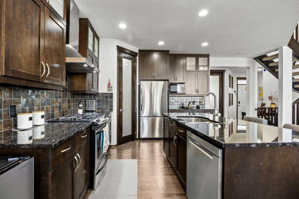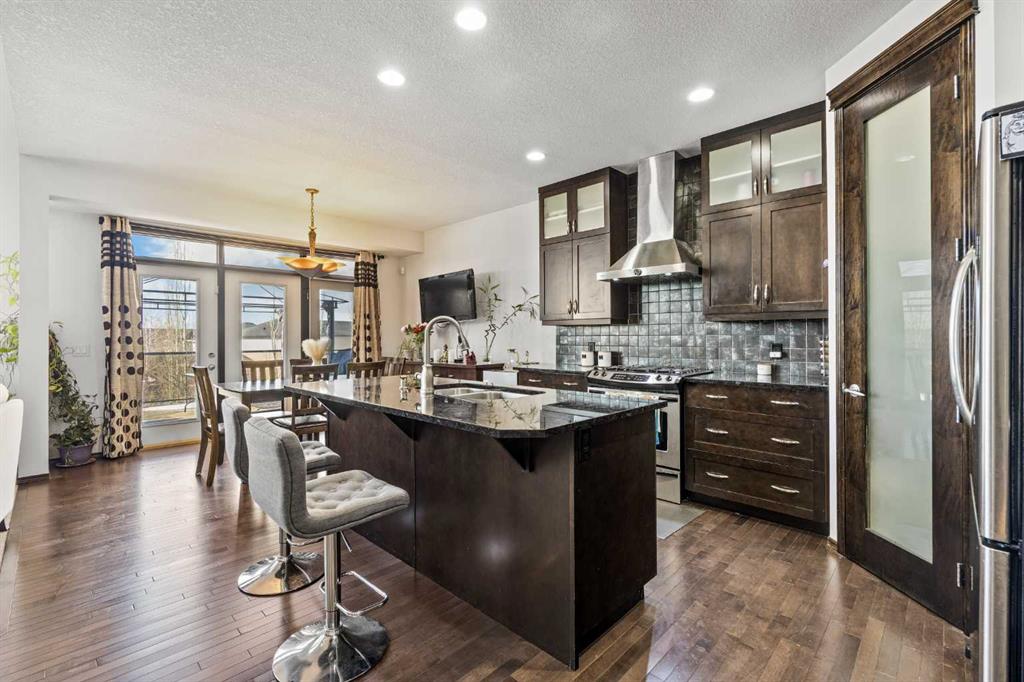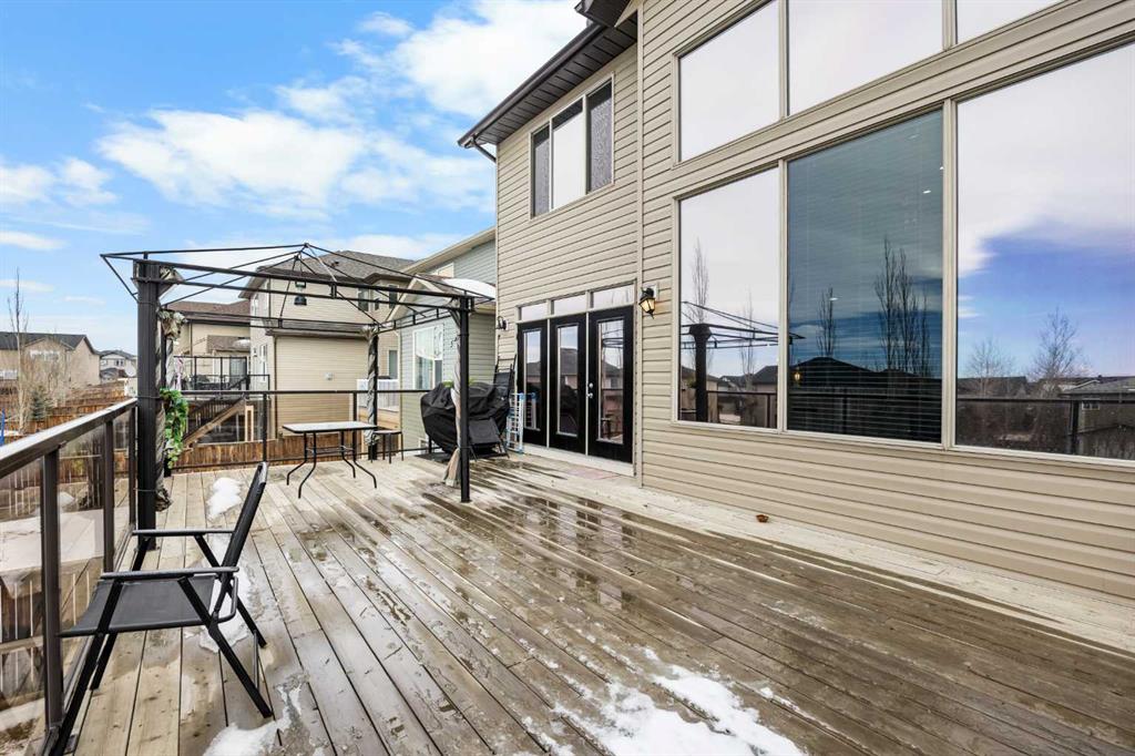 Welcome to this impressive 3-bedroom, 2.5-bath family home in the sought-after community of Panorama Hills, offering 2,225 sqft of above-grade living space plus a 2-bedroom illegal basement suite in Walkout level for excellent rental income potential (3,137 sqft total). Step inside to 9-foot ceilings throughout the main level with gleaming hardwood flooring. Continue to the heart of the home with an open floorplan, where you’ll be amazed by the soaring 2-storey Living room with large windows and anchored by a grand oversized gas fireplace. On the other side, the gourmet Kitchen features ceiling-height maple cabinetry, centre island, granite countertops, stainless steel appliances including gas stove, and walk-through pantry. Adjacent is the Dining room leading out to a full-width deck with glass panel railing and gazebo—a perfect place for hosting parties, summer barbecues, or relaxation. A Main floor Den with French doors is perfect to be your home office.