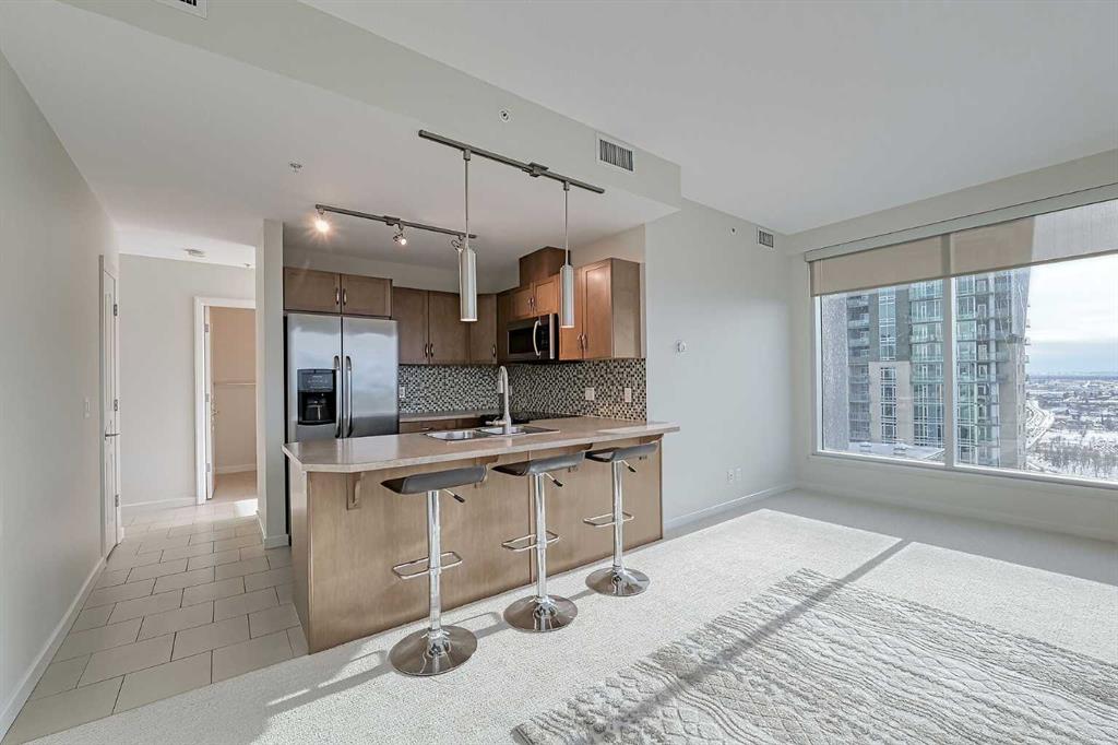 PUBLIC OPEN HOUSE Sat & Sun, the 7th & 8th of February 2-4.00p.m.***Welcome to 2804, 1320-1 Str. S.E, a remarkable apartment that defines the pinnacle of urban living. This luxurious property spans 800 square feet (838 Builders size) and offers 2 spacious bedrooms and 2 well-appointed bathrooms, providing the perfect blend of style, comfort, and convenience. The moment you step inside, you’ll be enveloped in an open and expansive floor plan, accentuated by high ceilings. Sunlight pours in through the large windows, creating a bright and inviting space that offers panoramic views of the city skyline, the majestic mountains, and the serene river. The kitchen is a chef’s dream, equipped with stainless steel appliances and sleek spacious countertops, ready to turn your culinary aspirations into reality. It’s not just a kitchen; it’s a canvas for your culinary creativity, whether you’re whipping up a quick meal or hosting a dinner party. The convenience of a dedicated laundry room adds to the property’s appeal, making daily chores a breeze. This apartment is move-in ready, designed with your comfort and convenience in mind, allowing you to enjoy a hassle-free lifestyle. In terms of location, you’ll find an array of dining options right at your doorstep, ensuring you can savor a variety of culinary delights. Public transportation is easily accessible, streamlining your daily commute. In the building, a fitness center offers the ideal spot to maintain an active and healthy lifestyle. When you’re ready for entertainment, the neighborhood comes to life with numerous nightlife options, providing a wide array of choices for your leisure. For those moments when you seek a peaceful retreat, the nearby parks offer a perfect escape, allowing you to connect with nature and recharge. Imagine starting your day with a cup of coffee or winding down with a glass of wine while taking in the breathtaking views of the city skyline, mountains, and river from your large balcony. It’s a visual feast that will never cease to inspire and captivate. 2804, 1320-1 Str. S.E. offers an unparalleled urban living experience. With its expansive layout, abundant natural light, and stunning vistas, it’s more than just an apartment; it’s an urban sanctuary. It comes with an underground, titled parking stall and assigned storage locker. Don’t miss this exceptional opportunity – contact us today to arrange a viewing and make this dynamic, modern property your new home. Elevate your lifestyle and seize the chance to live in the heart of the city, where comfort and convenience meet sophistication and style.
