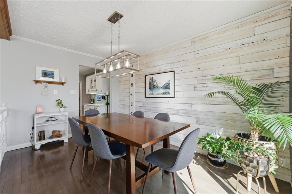 The main floor features an expansive living and dining area, highlighted by a large bay window that floods the space with sunlight. The kitchen is both functional and inviting, complete with a central island that’s perfect for everyday living, family time, or entertaining. It opens seamlessly to the dining area and a sunken family room, where you’ll spend countless nights cozying up to your wood-burning fireplace, watching shows or gathering with family and friends.