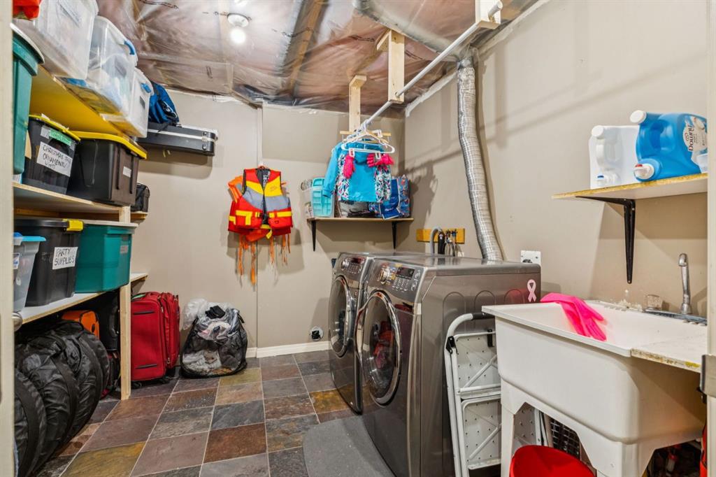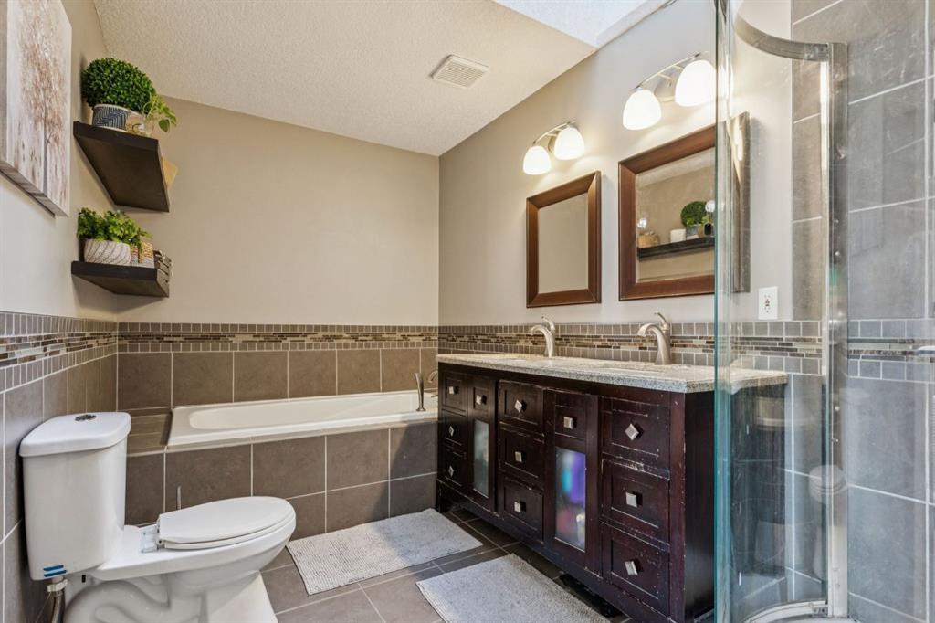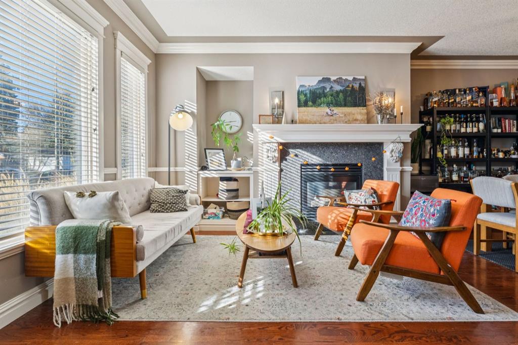 Westbrook Mall, the C-Train, and Marda Loop, and just minutes from downtown Calgary. The main floor features a cozy gas fireplace focal point, detailed trim work including crown mouldings and 6″ baseboards, and hardwood through the living and dining areas, plus a convenient main-floor powder room. The kitchen includes stainless steel appliances and opens directly to the private fenced back deck. Upstairs you’ll find a spacious primary bedroom with a vaulted ceiling and great natural light, shared access to a 5-piece bath, plus a second bedroom. The finished lower level provides a flexible rec / guest space, a 3-piece bath, a large laundry room with storage, and an additional dedicated storage area. Parking is included with an assigned stall in the shared garage. Roof was replaced in 2016 and the unit includes air conditioning. Some finishes are original and would benefit from cosmetic updates — a chance to add value and put your finishing touches on a home with great bones in one of Calgary’s most sought-after inner-city neighbourhoods.