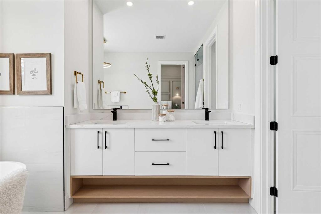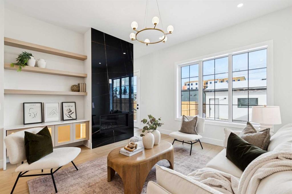 ** OPEN HOUSE, SAT FEB 21, 12-2PM & SUN, FEB 22, 11-1PM ** Welcome to this beautifully designed semi-attached home offering over 2,800 sq ft of professionally finished living space, thoughtfully crafted with elevated finishes and functional design throughout. Featuring 5 bedrooms and 3.5 bathrooms, including a fully legal 2-bedroom basement suite with separate entrance, this property offers exceptional flexibility for extended family or income potential. The main level showcases wide plank engineered oak flooring, extensive custom cabinetry, elegant wall paneling, and custom LED accent lighting that creates a refined yet inviting atmosphere. Large west-facing windows flood the home with natural light, enhancing the open and airy layout. The family room, seamlessly connected to the kitchen, is anchored by a stunning tile-covered gas fireplace. A dedicated main floor office with custom built-ins provides an ideal work-from-home space. At the rear entry, you’ll find a spacious mudroom complete with additional custom cabinetry and built-ins for practical organization.
