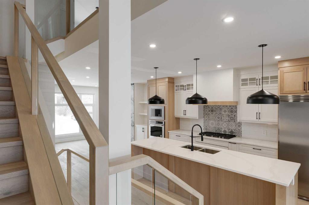 Priced to Sell! Over 3,300 livable square feet in this beautiful, brand new, 3-storey infill in the heart of the Killarney! With 5 bdrms + 4.5 baths, high ceilings, engineered hardwood, upgraded appliances and quartz countertops throughout this property offers so much! Walk into the spacious Main Foyer entrance, with custom closet, a 2-pc bath and impressively open floor plan; with Living Room cleverly located at the front. Imagine cozying up and relaxing next to the gas fireplace and built-in cabinetry with a good book. The nearby Kitchen features White Oak with large, long, island for extra seating and a separate pantry for extra storage. Here you’ll also find higher end, stainless steel appliances including a built-in oven, microwave, dishwasher, gas cooktop and huge, commercial grade, fridge+freezer! The Dining Room features space to eat and entertain and a sliding patio door leads out to the rear deck – for extended seasonal living space. There’s also a clever mudroom with storage space for all of your seasonal items, and a custom bench as well. Heading up to the 2nd floor, the stairs feature engineered hardwood and a glass railing, and you’ll also find 3 spacious bedrooms and 2 elegant bathrooms. The Primary bedroom also includes a 5-pc ensuite spa bath with dual vanities, lavish soaker tub, stand up shower, a huge walk-in closet, and a balcony. The 2 other bedrooms, one with another beautiful walk-in closet, also share a common 3-pc bath. You’ll also find located on the Laundry room with built-in sink and cabinetry here as well. On the 3rd floor you’ll find more great living space in the Family Room with nearby balcony, and another bedroom with its own walk-in closet and a 3pc bath. The fully-developed Lower level has an additional bedroom, a den, a Rec room with wet bar and there’s another 3-pc bath. Heading outside, you’ll find the fenced backyard and room for Spring/Summer BBQ’s, along with the detached double garage. This property shows well and is close to so much!