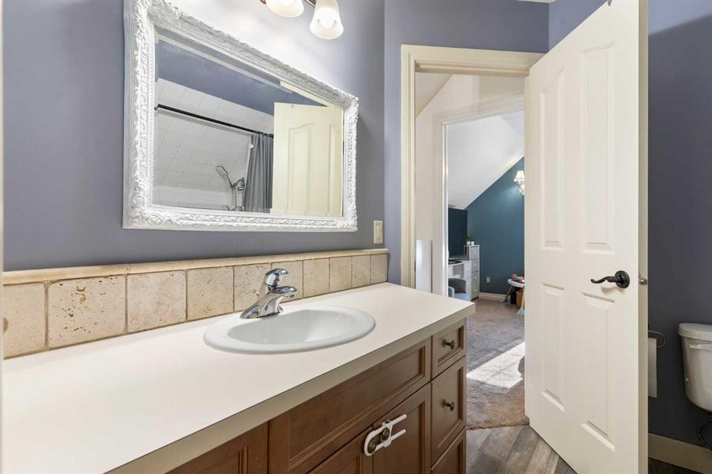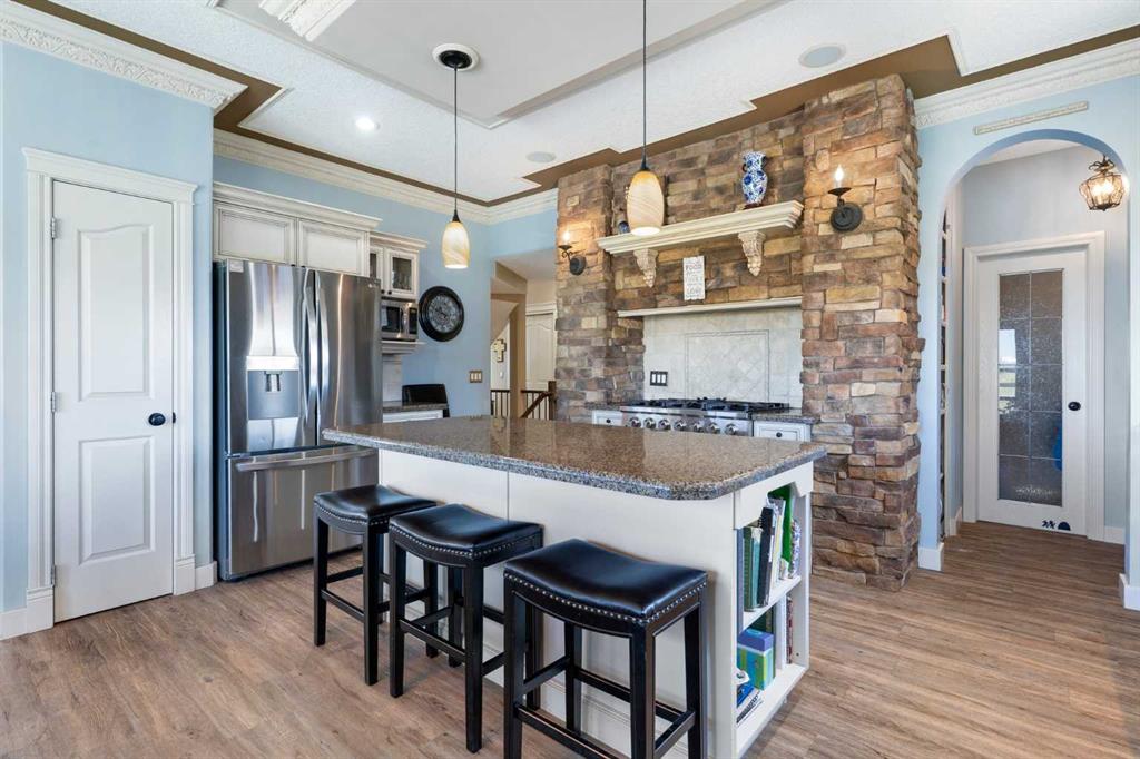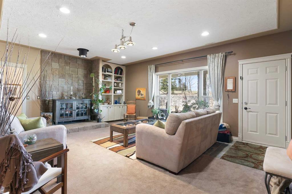** MOUNTAIN VIEWS** BUNGALOW** Welcome to this sensational estate nestled on 2.58 acres, offering breathtaking mountain views from your very own WEST FACING rear deck. From the moment you step inside this home you’re welcomed by a grand entrance featuring soaring ceilings and an abundance of natural light. The main level boasts a spacious mudroom leading to a secondary entrance, a convenient 2-piece powder room, a luxurious primary suite, and meticulous craftsmanship that is immediately apparent with the intricate crown moulding throughout . The primary bedroom features a European-inspired 4-piece ensuite bathroom designed for ultimate comfort and style. The kitchen is a showstopper with a stainless steel refrigerator and dishwasher updated in(2021), a beautiful ceramic tile backsplash, granite countertops, and a new oversized gas range(2024) with exquisite stone surround that is sure to take your breath away. Enjoy meals in the large dining area or step out onto the covered deck for al fresco dining with those highly sought after mountain views. You can also work from home in the beautifully appointed main-level office, complete with a cozy gas fireplace with a stunning hand crafted wood surround. Continuing the theme of comfort and elegance, the main level also features in-ceiling speakers and a sprawling living room anchored by another striking fireplace boasting a natural rock surround—perfect for entertaining. Upstairs, you’ll find two generously sized bedrooms, a full 4-piece bathroom, and a large storage space—ideal for family living. The walkout basement is a true retreat, highlighted by a dramatic natural rock wall and a unique wooden door leading to your private in-home theatre. Additionally, this level offers two more spacious bedrooms, another 4-piece bathroom, and a massive recreational room—ideal for guests or extended family. The oversized double attached garage is a hobbyist’s dream with in-floor heating and 40-amp service. Comfort is ensured year-round with air conditioning installed in 2024, a shingle replacement in 2017, and recent furnace upgrades that include a new flame sensor and gas valve and new DuradeK in 2025. This home offers the perfect blend of rustic charm, modern luxury, and functionality—truly a must-see. Book your private showing today!