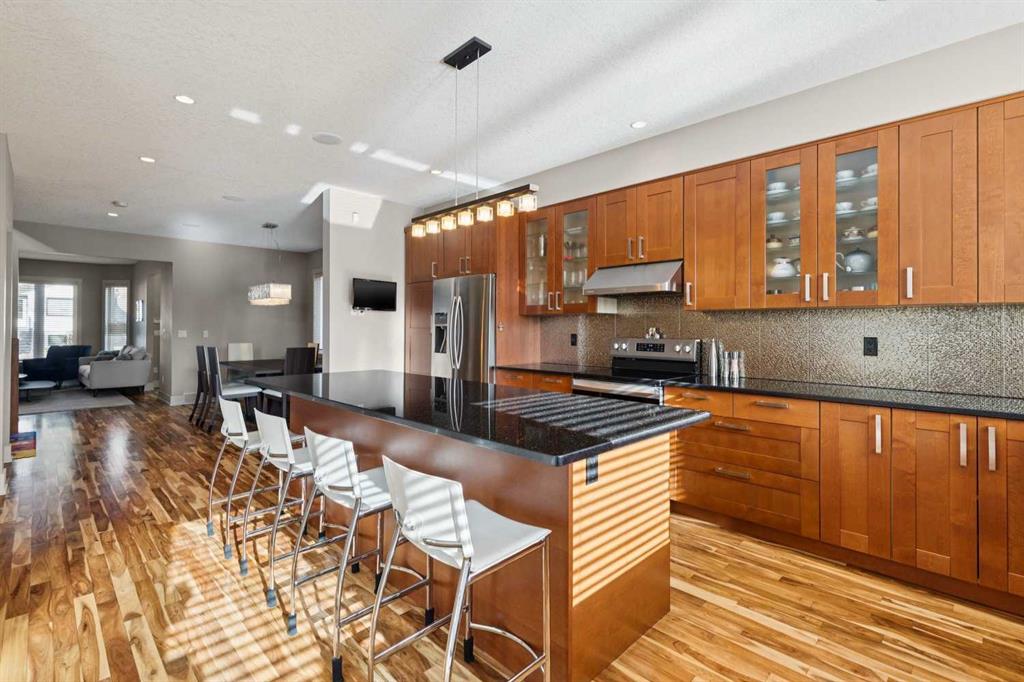 Impeccably designed both inside & out with the finest attention to detail, this custom-built home is spectacular! Located on a 28×119 lot in the heart of Glenbrook, surrounded by trees this property offers over 2,800sqft of exquisite living space & all the upgrades you can imagine. The stucco siding and elegant stone trim adds to the street appeal. You are welcomed into the home to walnut flooring throughout the entire main floor. The main level offers 9’ knockdown ceilings and open floor plan. The kitchen boasts an upgraded stainless steel appliance package, solid wood cabinetry, quartz counters, & massive island which is a must for entertaining. The door just off the kitchen perfectly connects you to the 20’ by 10’ stamped concrete patio regardless of rain or shine. Upstairs you’ll find a primary retreat like no other featuring an intimate bedroom with city views, and bright windows. The ensuite has a free-standing soaker tub, tiled shower with 10 mm glass, and a walk-in closet that will be the envy of all your friends. Two additional upstairs bedrooms have a 4-piece bathroom to share and one with a walk-in closet. The second-floor laundry room is perfect for a busy family. The lower level consists of an open Rec Room with built in speakers, games area, a 4th bedroom & 4th bathroom. The double garage is fully finished and perfect to keep the snow off on cold winter nights. Other features are central A/C, central vacuum, exterior gas outlets, and tons of storage. A short drive to downtown and a short walk to the playground down the street makes this the best house to call your next home.