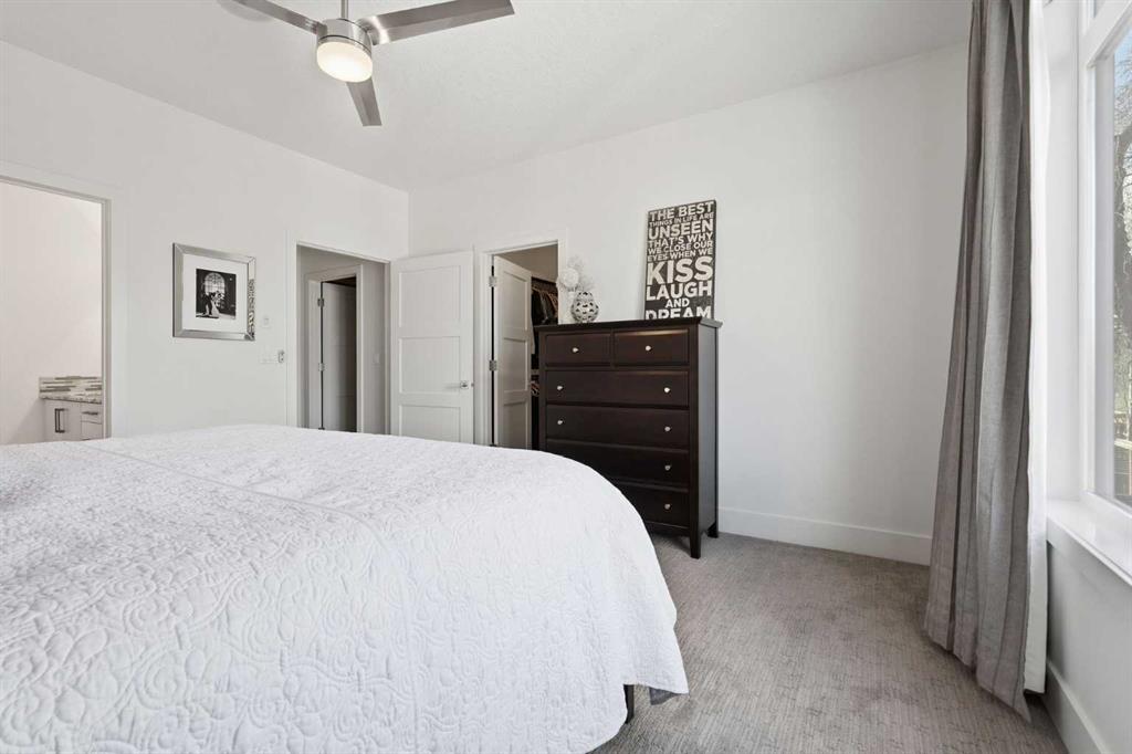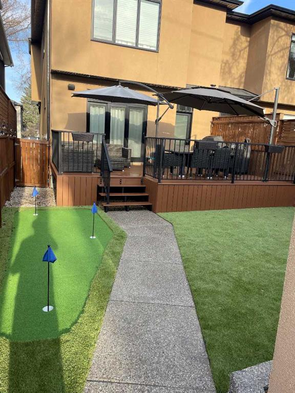 OPEN HOUSE SATURDAY, APRIL 18TH & SUNDAY, APRIL 19TH FROM 1-4 PM EACH DAY. Extreme pride of ownership is evident throughout this move in ready 3+1 bedroom home, offering over 2,700 sq ft of pristine, thoughtfully designed living space. The main level features hardwood floors and lofty ceilings, beginning with a spacious front dining room ideal for hosting family and friends. The dining area flows seamlessly into the beautifully appointed kitchen, complete with granite countertops, an island with eating bar, abundant cabinetry, and high end stainless steel appliances including a new Bosch dishwasher. The adjacent living room is anchored by a tiled feature fireplace and custom built ins. A stylish 2 piece powder room completes the main level. The upper level hosts three generous bedrooms and a 4 piece main bath. The primary retreat includes a walk in closet and a private 5 piece ensuite with in floor heat, dual sinks, a relaxing soaker tub, and a separate shower. A well appointed laundry room with sink and storage is also conveniently located on this level. The fully developed basement extends the living space with an office nook, large family/media room and a wet bar—perfect for movie nights or game day. A fourth bedroom, 3 piece bath, and dedicated storage room complete the lower level. Additional highlights include a guaranteed pet free home, central air conditioning, a 6 zone in home speaker system, custom sheer blinds on all windows, and TV mounts in both the living room and basement. Outside, enjoy a private west facing backyard designed for low maintenance living, featuring an extended deck, astro turf with a 3 hole putting green, an aggregate pathway to the garage, and an irrigated integrated planter. The double detached garage accessed from the paved back lane, is insulated, drywalled, and heated for year round comfort. This beautifully maintained home is ideally located close to schools, parks, shopping, public transit, and offers quick access to 26th Avenue, Richmond Road, and Crowchild Trail.