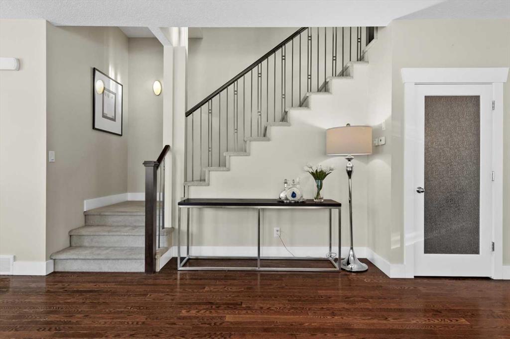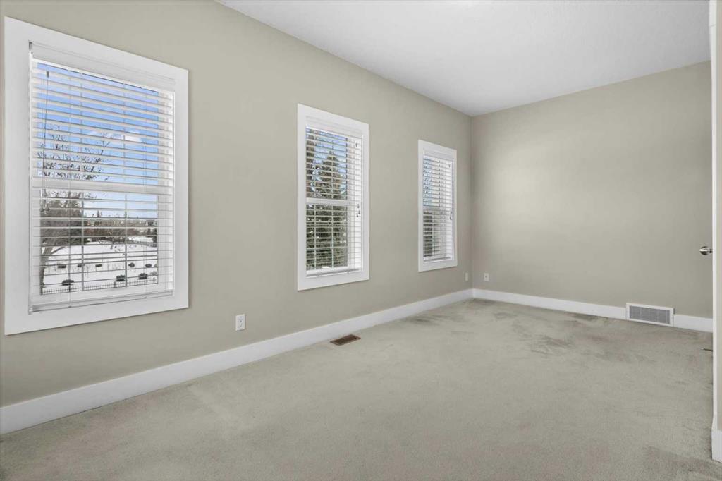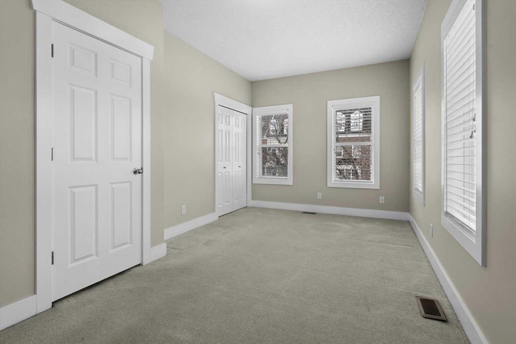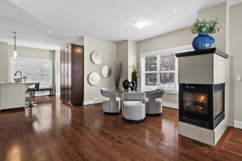 Architecturally refined and timelessly designed, this 3 storey END UNIT townhouse presents a commanding presence within the heart of Garrison Green, offering nearly 3,000 sq. ft. of thoughtfully developed living space and a layout designed to support both everyday life and elevated entertaining. A charming brick exterior creates an enduring first impression while the end unit positioning allows for additional windows and enhanced natural light throughout. Hardwood floors, high ceilings and a neutral colour palette set a calm and cohesive tone across the main level, where an open floor plan encourages effortless flow between living, dining and kitchen spaces. A 3 sided fireplace anchors the main floor, inviting relaxation in the living room while simultaneously creating a warm, intimate atmosphere in the dining area ideal for hosting gatherings. Culinary creativity is inspired in the beautifully appointed kitchen featuring quartz countertops, a gas stove for precise cooking control, stainless steel appliances, full height cabinetry for expanded storage, a wall pantry for organization and a centre island with breakfast bar seating that naturally becomes a social hub. A rear mudroom provides a functional transition from the outdoors, easily concealing daily clutter and offering convenient access to the powder room for quick cleanups after arrivals. Outdoor enjoyment continues on the rear deck equipped with a gas line, simplifying summer barbecues and casual evenings outside. An iron-railed staircase leads to the second level where a private bedroom layout places sleeping quarters on opposite sides, enhancing privacy and flexibility for families or guests. 2 extremely generously sized bedrooms each benefit from corner windows that draw in abundant daylight, while a centrally located laundry area eliminates the need to carry loads between floors. A full 4-piece bathroom completes this level with ease and practicality. The entire 3rd floor is dedicated to an exceptional primary retreat, creating a true owner’s sanctuary defined by privacy and scale. Vaulted ceilings and additional windows amplify the sense of space, while the indulgent ensuite offers dual vanities for streamlined mornings, a deep soaker tub for unwinding and a separate shower for spa-like comfort. A large walk-in closet provides ample room for wardrobe organization and seasonal storage. Additional living space is found in the professionally finished basement where a massive recreation room allows furniture-defined zones for media, play, fitness, work or hobbies without compromise. A full 4 piece bathroom on this level supports extended stays and flexible use. Outdoor living is complemented by a private rear deck with sunny south exposure and a paver stone patio that leads directly to the double detached garage, ensuring secure parking and added storage. Central vacuum simplifies cleaning routines for everyday convenience. Designed for everyday comfort with space, privacy and a walkable park-side setting!