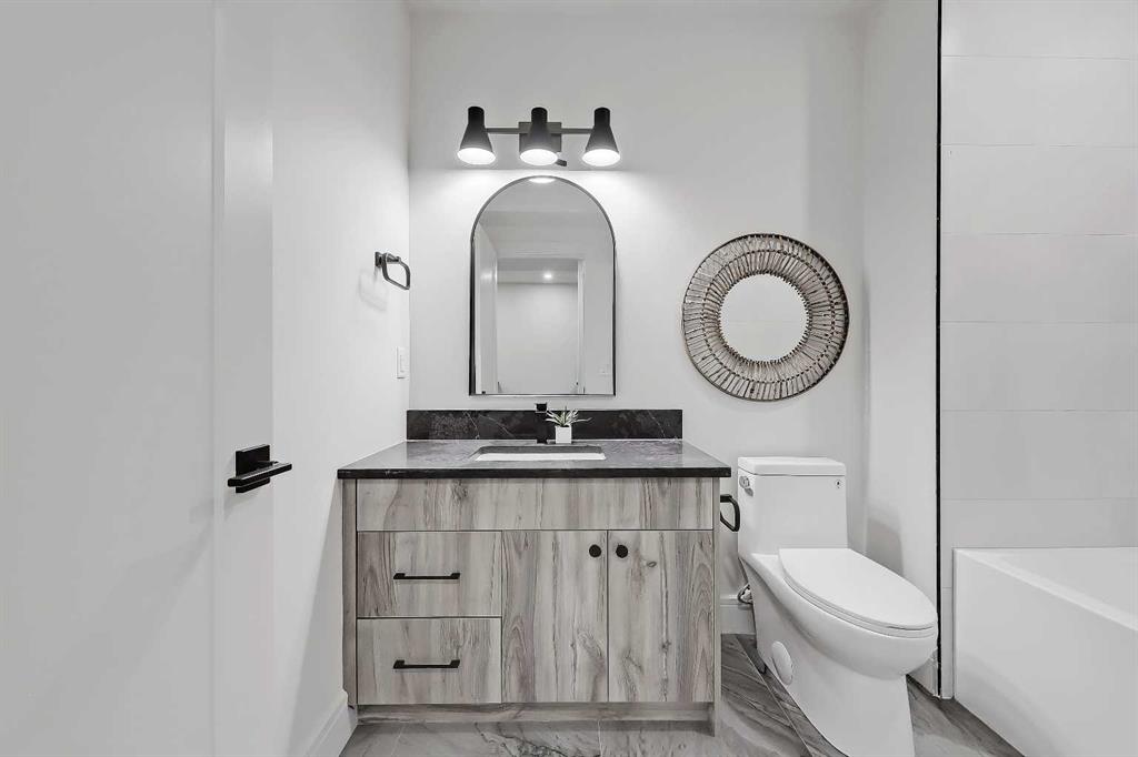 Tile detailing, modern finishes, designer lighting package, upgraded German-made KULU windows & doors…it’s everything you’re looking for in a luxury 3-STOREY SEMI-DETACHED INFILL! Now MOVE-IN READY, this designer home is located just off 26th Ave in the heart of Killarney – the ideal location for your new family home! The main floor opens into a welcoming foyer w/ built-in closet & bench, offering views into the spacious living room w/ a gas fireplace w/ full-height tile, as well as a stunning wood-panelled feature wall. Beautiful oak hardwood flooring leads you into the open-concept kitchen – fully equipped w/ an oversized island w/ quartz countertop, timeless shaker-style cabinetry w/ numerous lower drawers, & a contemporary flat-panel built-in cabinetry pantry. The designer kitchen is nicely finished w/ a full stainless steel appliance package, complete w/ a panelled French door refrigerator, a Dacor double wall oven, a gas cooktop w/ pot filler, & a built-in dishwasher. The custom built-ins continue into the dedicated dining room, w/ open shelving & lower cabinets w/ quartz counter for everyday convenience. Step out onto the back deck through the rear mudroom, complete w/ a built-in bench, coat cabinet, & tile flooring. Before you head upstairs, the stylish powder room is tucked away w/ a beautiful skirted vanity & vessel sink. Up the bright stairwell w/ glass wall awaits the primary suite – as sleek & modern as the rest of the home, w/ oversized windows, a private balcony w/ KULU door, & an extra-large walk-in closet! The chic ensuite features a dual vanity w/ a quartz countertop & a bank of lower drawers, a freestanding soaker tub, & a stand-up shower w/ full glass walls, rain showerhead, & bench. Two secondary bedrooms share the main 4-pc bath & the laundry room features a sink, upper cabinetry, hanging rod, tile backsplash, & a folding counter. A luxury home isn’t complete without a THIRD FLOOR LOFT, & this space has not been overlooked. More oversized windows bring in lots of natural light, shining across a spacious rec area w/ gas fireplace, full wet bar w/ extended quartz countertop, bar sink, & statement open shelving. A lovely sitting area w/ built-in desk overlooks the COVERED BALCONY & of course, there’s a full bath w/ fully tiled shower, too. The living space continues into the basement, w/ a full wet bar w/ quartz island, dual basin sink, & a designer tile floor, w/ a large family room, built-in media centre, a glass walled home gym w/ sports flooring, a 4th bedroom, & a full 4-pc bath. Killarney offers the perfect balance of community & convenience. From here, you’re within walking distance to Glendale School, Killarney School, & Bishop Carroll High. Westbrook Mall & the CTrain are only 5 minutes away, making downtown access effortless. The Killarney Aquatic & Recreation Centre, Optimist Athletic Park, & Shaganappi Golf Course are all nearby. Call to view today!