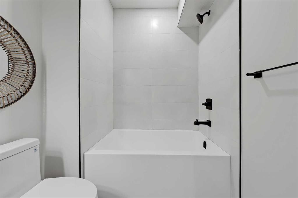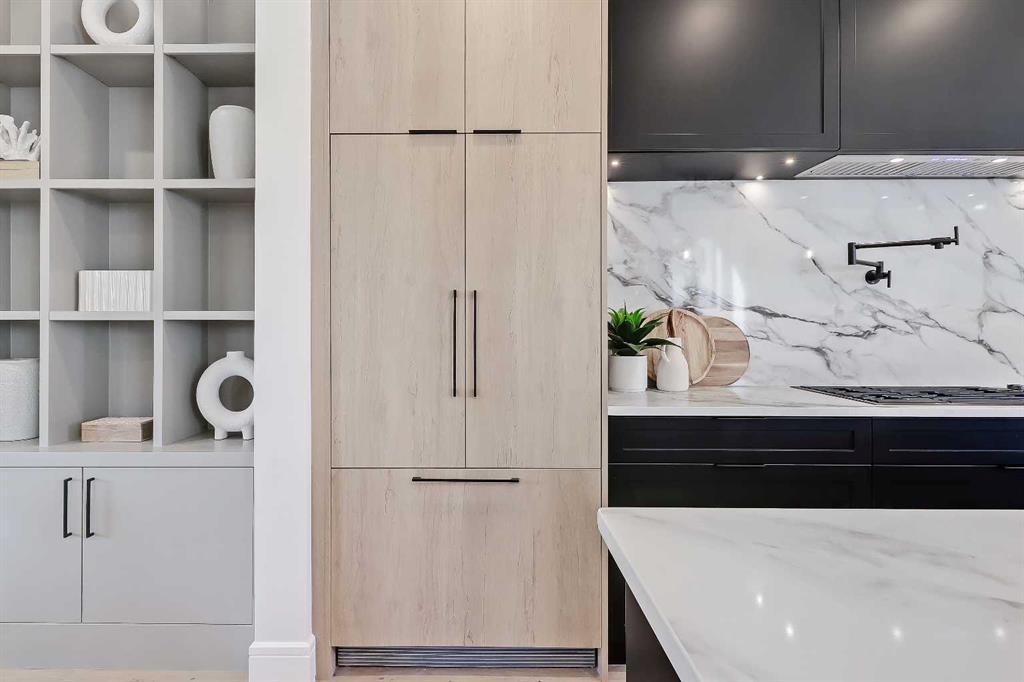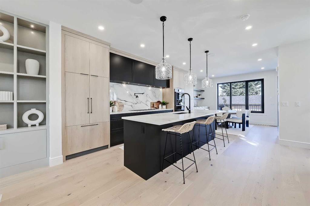 Tile detailing, modern finishes, designer lighting package, upgraded German-made KULU windows & doors…it’s everything you’re looking for in a luxury 3-STOREY SEMI-DETACHED INFILL! This designer home is located just off 26th Ave in the heart of Killarney – the ideal location for your new family home! The main floor opens into a welcoming foyer w/ built-in closet & bench, offering views into the spacious living room w/ a gas fireplace w/ full-height tile, as well as a stunning wood-panelled feature wall. Beautiful oak hardwood flooring leads you into the open-concept kitchen – fully equipped w/ an oversized island w/ quartz countertop, timeless shaker-style cabinetry w/ numerous lower drawers, & a contemporary flat-panel built-in cabinetry pantry. The designer kitchen is nicely finished w/ a full stainless steel appliance package, complete w/ a panelled French door refrigerator, a Dacor double wall oven, a gas cooktop w/ pot filler, & a built-in dishwasher. The custom built-ins continue into the dedicated dining room, w/ open shelving & lower cabinets w/ quartz counter for everyday convenience. Step out onto the back deck through the rear mudroom, complete w/ a built-in bench, coat cabinet, & tile flooring. Before you head upstairs, the stylish powder room is tucked away w/ a beautiful skirted vanity & vessel sink. Up the bright stairwell w/ glass wall awaits the primary suite – as sleek & modern as the rest of the home, w/ oversized windows, a private balcony w/ KULU door, & an extra-large walk-in closet! The chic ensuite features a dual vanity w/ a quartz countertop & a bank of lower drawers, a freestanding soaker tub, & a stand-up shower w/ full glass walls, rain showerhead, & bench. Two secondary bedrooms share the main 4-pc bath & the laundry room features a sink, upper cabinetry, hanging rod, tile backsplash, & a folding counter. A luxury home isn’t complete without a THIRD FLOOR LOFT, & this space has not been overlooked. More oversized windows bring in lots of natural light, shining across a spacious rec area w/ gas fireplace, full wet bar w/ extended quartz countertop, bar sink, & statement open shelving. A lovely sitting area w/ built-in desk overlooks the COVERED BALCONY & of course, there’s a full bath w/ fully tiled shower, too. The living space continues into the basement, w/ a full wet bar w/ quartz island, dual basin sink, & a designer tile floor, w/ a large family room, built-in media centre, a glass walled home gym w/ sports flooring, a 4th bedroom, & a full 4-pc bath. Killarney offers the perfect balance of community & convenience. From here, you’re within walking distance to Glendale School, Killarney School, & Bishop Carroll High. The CTrain is only 5 minutes away, making downtown access effortless. For sports enthusiasts, the Killarney Aquatic & Recreation Centre, Optimist Athletic Park, & Shaganappi Golf Course are all nearby.