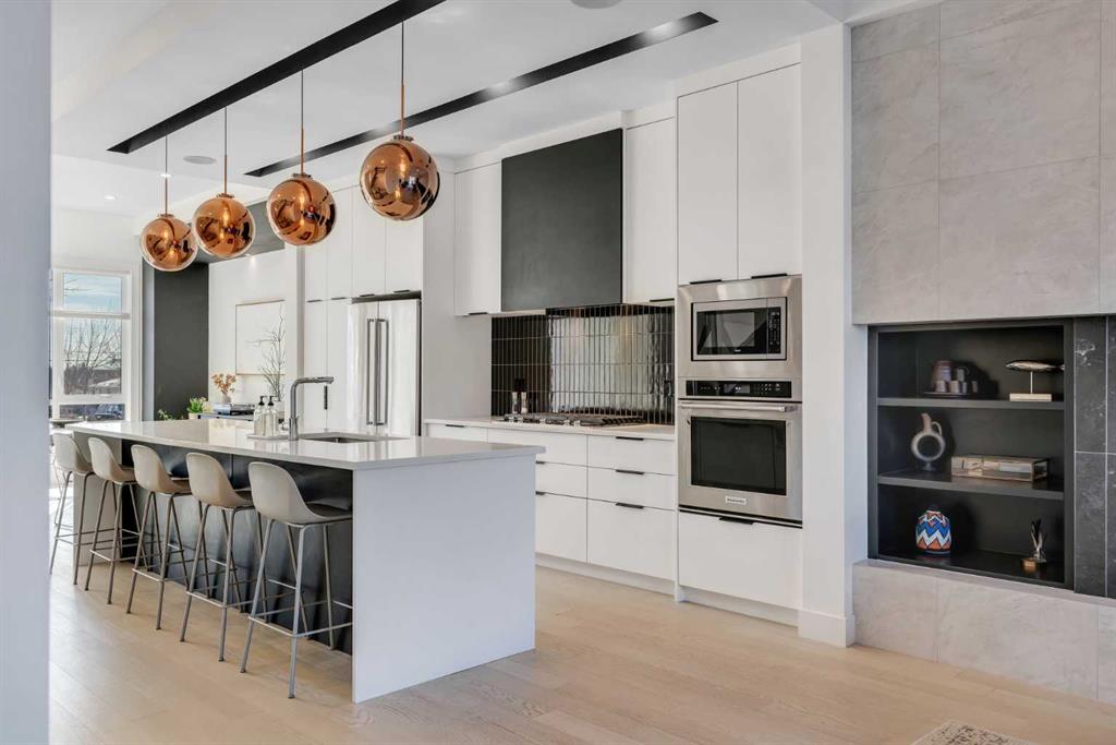Stop imagining and START LIVING in this luxurious 4-bed, 3.5-bath home with over 1950 sqft above grade, plus thoughtfully integrated basement living space. The main floor features 10-ft painted ceilings, an open riser staircase with glass railing, and a custom-tiled fireplace that spans the full living room wall. In the kitchen you can find a built-in SS appliance package, painted built-in hood fan, soft-close cabinetry, pull-out pantry shelves, & custom ceiling detail with designer pendant lighting. Enjoy entertaining guests and serving up hors d’oeuvres on the sprawling island or in the elegant dining space. Customized millwork in the convenient mud room and design details throughout are the picture of quality craftsmanship.