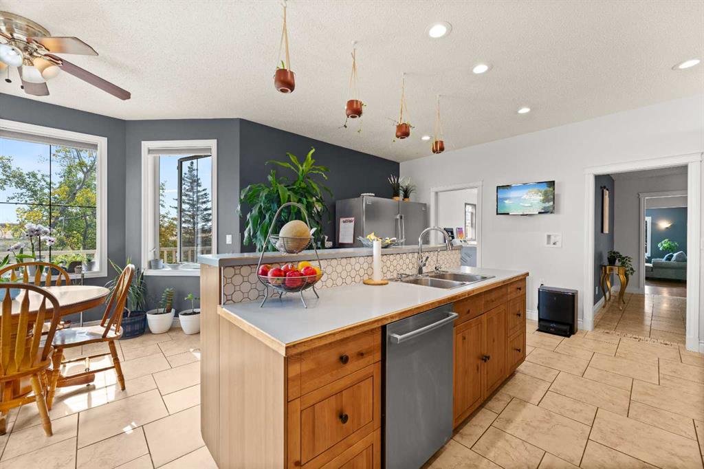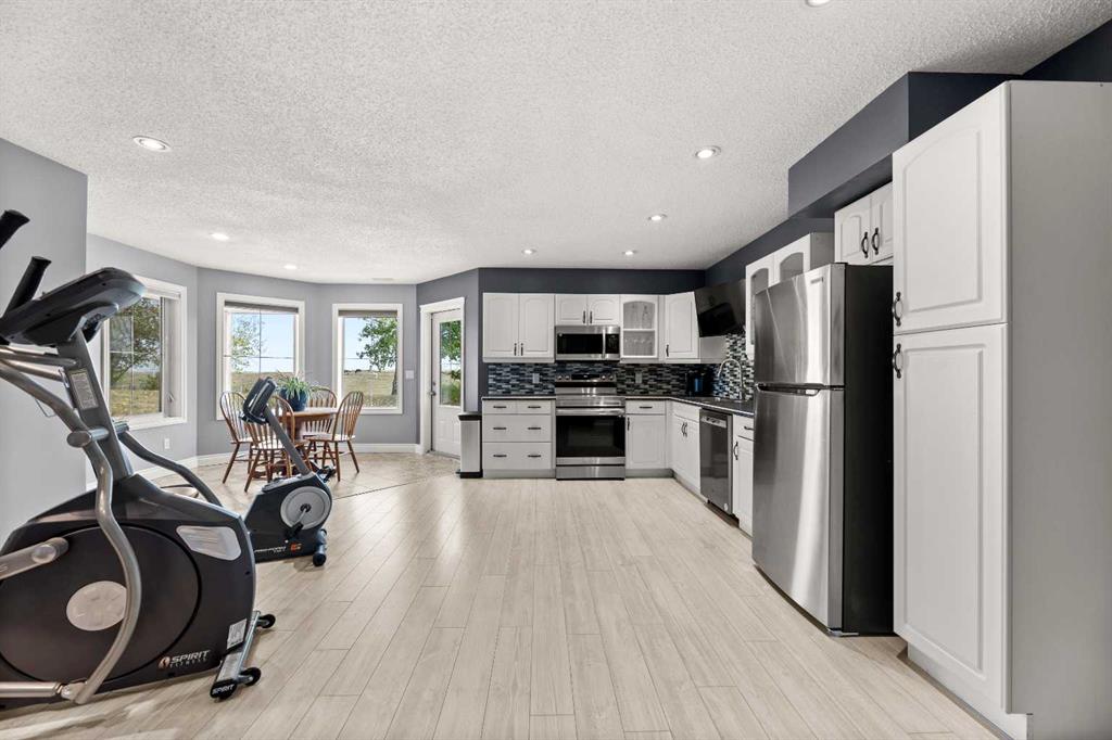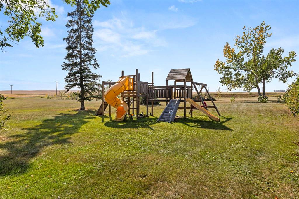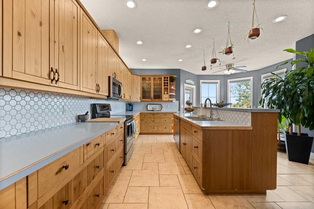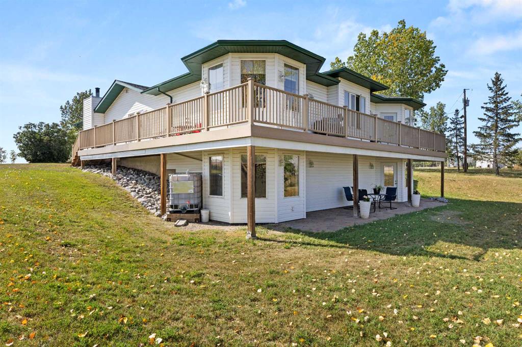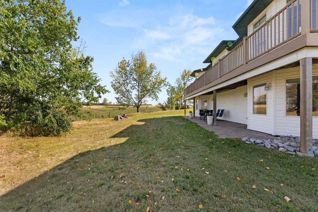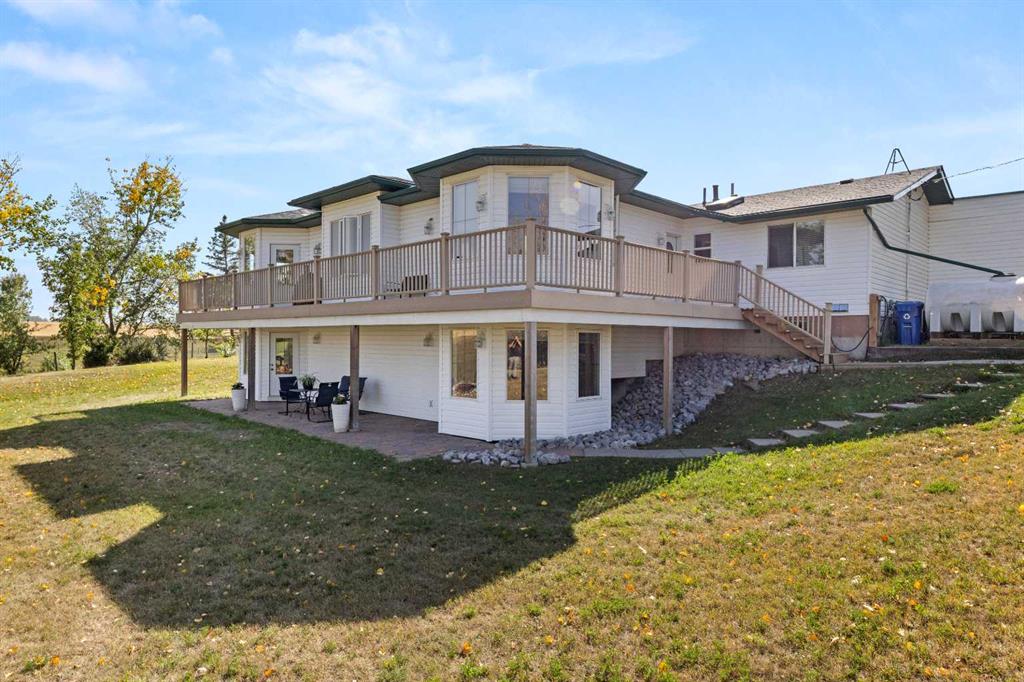 If you’ve been searching for a spacious country home with room for extended family, space for your animals, and breathtaking views of the coulee, this home with over 5200 square feet of living area is it! From the moment you step onto the inviting front deck overlooking the beautifully landscaped yard, you’ll feel at home. Inside, gleaming maple hardwood floors lead you into a sunken living room with a cozy wood-burning fireplace. The formal dining room flows seamlessly into a large kitchen featuring a central island with eating bar, stainless steel appliances, and a sunny breakfast nook framed by bay windows. Step out onto the wrap-around rear deck and enjoy sweeping views of the coulee—perfect for family meals and entertaining. The private owner’s retreat is a true sanctuary with a sitting area overlooking the coulee, a large walk-in closet, and a spa-like ensuite with a bubble jetted tub and separate shower. The main floor also includes three generously sized bedrooms, a 5-piece family bath with double vanity, a powder room, and a large laundry room complete with cabinetry, countertop, sink, and two walk-in pantries. The fully finished walkout basement offers incredible versatility with a private living space for extended family that includes its own kitchen, dining/sitting area, large bedroom with laundry-ready walk-in closet, a 4-piece bath, and patio access to the east yard. The rest of the lower level is designed for fun and functionality, with a media room, games room, craft/hobby workshop, and abundant storage. The entire basement can be used as part of the main house living space without any renovations needing to be completed. Outdoors, the fenced pasture with riding arena, two horse shelters, chicken coop with power and water, storage shed, dog run, and large garden provide everything you need for a country lifestyle. Extensively renovated in 2007, this home now boasts over 1,000 additional square feet, in-floor heat on both levels, high-efficiency furnace, boiler with hot water storage, and a manifold plumbing system. Major updates include septic system replacement (2008), rebuilt front deck, new rear deck stairs and door, new garage door opener, lower-level kitchen installation, upgraded lighting and electrical, and numerous cosmetic updates such as flooring, window coverings, paint, and bathroom upgrades. Over 50 trees have also been planted, adding to the property’s beauty and privacy. This unique property combines comfort, functionality, and country charm—ready for you, your family, and your animals to enjoy for years to come.