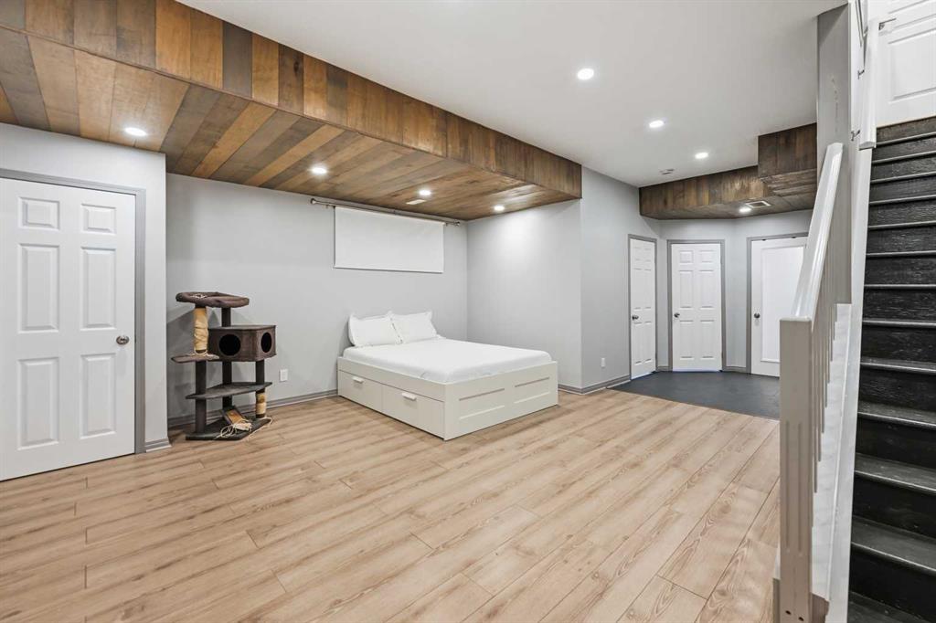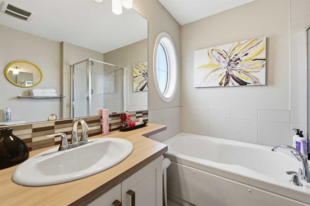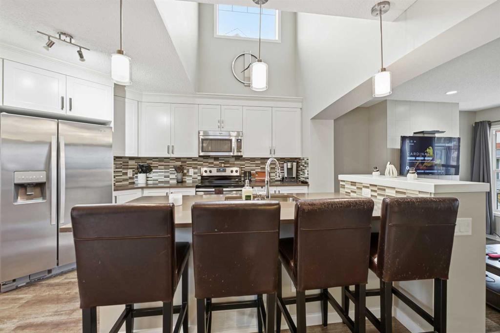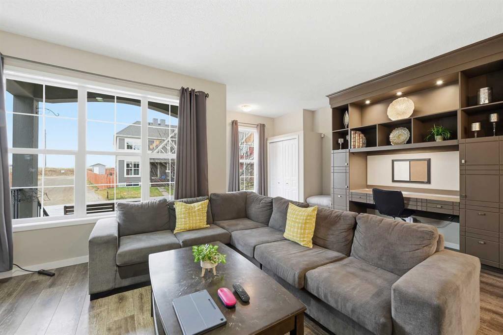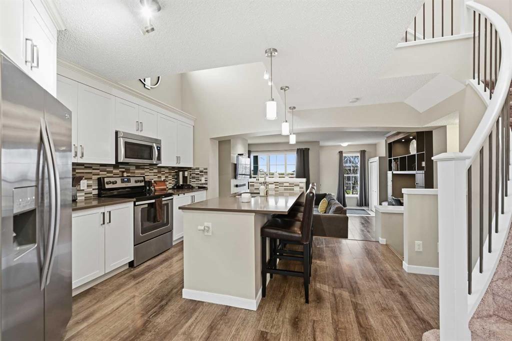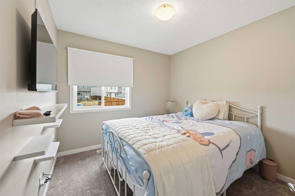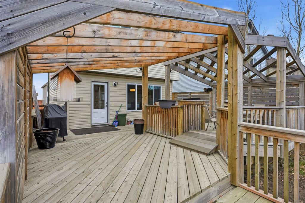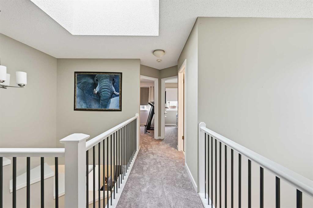 Are you looking for the Belvedere plan? Look no more, as this one just got listed. This gorgeous and well maintained home has 3 bedrooms, 2.5 baths, open kitchen with stainless steel appliances, beautiful curved staircase and a large dining area. The living room has a custom built computer/storage/library area, unique to this home, a fireplace to keep you warm those winter nights and large windows. The kitchen has open ceilings to the top and a skylight that brings lots of light in. Brand new dishwasher installed in October . On the second floor you will find a master bedroom, master bath and walk in closet, along with its on cute but spacious balcony, to enjoy your sunsets. This area is separated from the other bedrooms and full bath by a bridge open to below, for total privacy . The basement has a large rec room , the laundry and utility area, storage, plus an office that can be transformed into another bedroom if you wish. The laundry room and utility/storage rooms are very generous too. This house has vacuum systems and a water softener. Brand new carpets throughout the house, installed at the beginning of November. Water tank was also replaced summer 2024. A very large deck is awaiting for you, plus a very large yard. The parking area in the back is very big also( it fits two RV’s easily ) , which gives you an opportunity to build a spacious garage to your liking. This home has easy access to Stoney Trail, South Trail Hospital, YMCA and lots of shopping, medical clinics, Fish Creek and a few already established schools in the area.