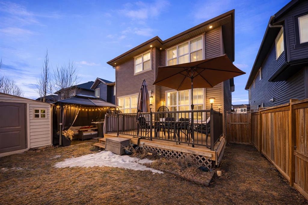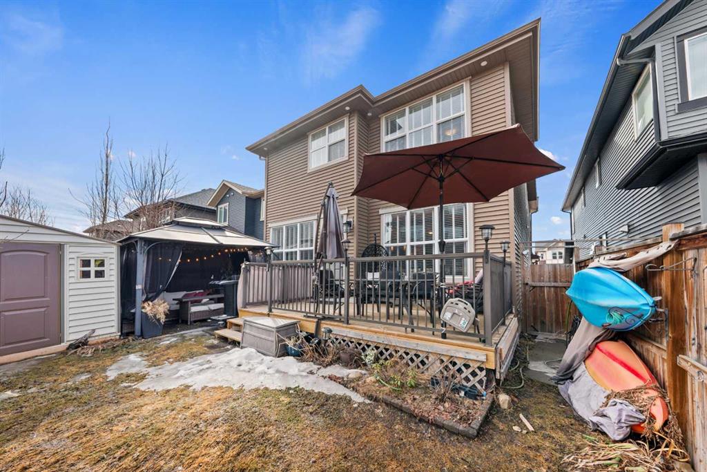 Welcome to this beautifully upgraded and fully finished 6-bedroom, 4-bathroom home in the highly desirable community of Kings Heights in Airdrie, proudly owned and meticulously maintained by the original owners since new, offering 2,421 sq ft of thoughtfully designed living space perfect for families of all sizes. Step inside to discover luxury laminate flooring, a warm and inviting electric fireplace, and a bright open-concept layout ideal for everyday living and entertaining. The home features a wide double car garage with high ceilings and a stunning east-facing backyard complete with an outdoor gazebo (fully equipped with TV), making it the perfect space for BBQs and relaxing throughout the seasons. Upstairs, enjoy the convenience of upper-level laundry and spacious bedrooms, including a luxurious primary retreat showcasing a rare TRUE “his and hers” ensuite with dual walk-in closets, separate vanities, a soaker tub, and a premium walk-in shower. Even the shared upper bathroom features a double vanity, ideal for busy households. The fully developed basement adds incredible versatility with two additional bedrooms, a full bathroom, a large entertainment/theatre space, and a flex/office room for extra functionality. Additional upgrades include dual furnaces, hot water tank, programmable exterior pot lights, and smart switches for customizable lighting. Located on a quiet, family-friendly street, this home offers unbeatable walkability to top-rated schools like Heloise Lorimer School and École des Hautes-Plaines, along with easy access to parks, ponds, pathways, transit, shopping, and amenities including Kingsview Market and Genesis Place. With quick connections to Yankee Valley Blvd and QEII, commuting to Calgary (approx. 10 minutes) or CrossIron Mills (approx. 8 minutes) is effortless. Located in one of Airdrie’s most walkable family communities while being accessible to public transit. Enjoy amenities such as basketball courts, soccer fields and skating rinks blocks away along with an apple orchard that ANYONE can access in the summer and fall where garden lovers can enjoy garden groups. Surrounded by green spaces, ponds, recreational facilities, and even nearby fishing spots and community orchards, this home delivers the perfect balance of lifestyle, convenience, and community in one of Airdrie’s most sought-after neighbourhoods.