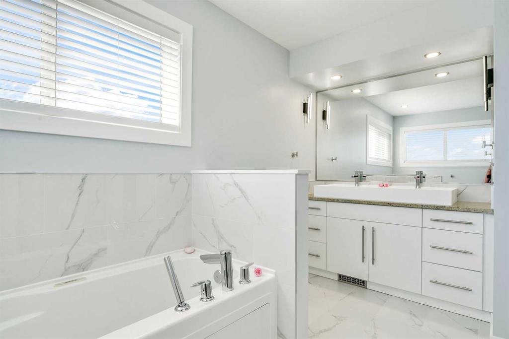This absolutely stunning updated 2 storey family home sits on a massive pie shaped lot on a quiet, family friendly street with a playground steps away. This impeccable home features 2319 sq ft of luxurious development, offering 4 bedrooms total & 3.5 bathrooms. Perfect for family & entertaining, this remarkable home offers a beautiful gourmet kitchen with premium stainless appliances including fridge with ice & water maker, ceramic top range, dishwasher, built-in microwave, a central island & huge walk-in pantry. A bright & open dining area with tons of room for guests that opens to a massive 21 x 12 maintenance free private deck that’s perfect for evening barbeques. Adjacent to the dining area is the huge family sized-living room with gleaming wood floors and electric fireplace. The upper floor features a large primary bedroom with a walk-in closet, spacious ensuite with a jetted tub, large vanity and stand-up shower. Two additional bedrooms, a 4 pc main bath & a convenient upper laundry complete this level. The fully finished basement with a 4th bedroom, a cozy recreation room perfect for watching movies & playing games, a separate den or office (currently used as an exercise room), another full bath & a huge storage area with built-in shelving. You have everything you need for a growing family! Extensively updated, it also boasts 9 foot ceilings with knock down ceilings, built-in speakers with individual room volume controls, water softener, central air conditioning to take the edge off on those hot summer nights, solid passage doors, wood shelving in kitchen pantry, granite countertops in all bathrooms & caesarstone in the kitchen. Impeccable landscaping that includes poured exposed aggregate walk-ways & patios that surround the entire home, robust raised flower or garden beds large enough to accommodate several different home-gardening projects, metal railings on maintenance free deck, beautiful 6 foot perimeter fencing, large rear shed with 2-level storage and more! A new oversized triple garage plus double wide concrete parking pad, great for 2 vehicles, boat, or an RV. This property’s sunny southwest pie lot at over 5100 sq ft is one of the largest on Copperstone Gardens and leaves ample room for kids, pets and entertaining guests. Enjoy proximity to parks, walking trails, schools, & shopping centers, plus fantastic community amenities including two scenic ponds, a community center, tennis & basketball courts, skating rink and a tobogganing hill.