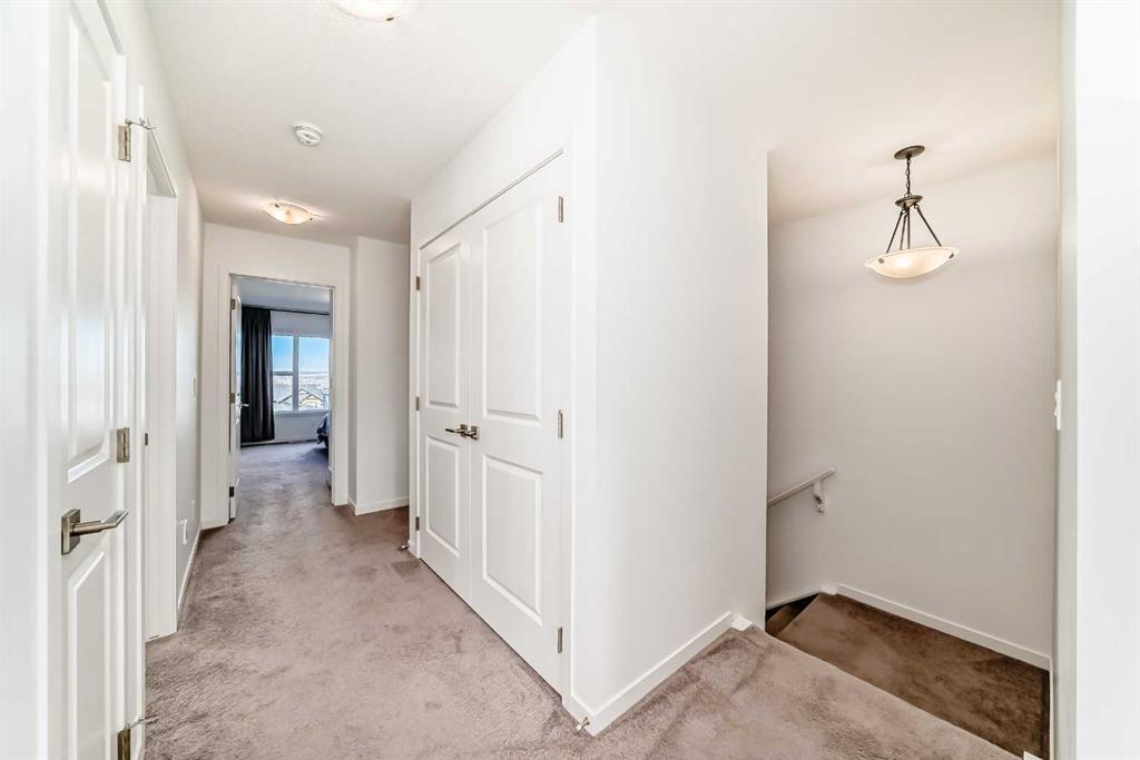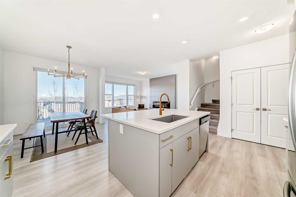 Backing into serene greenspace – Modern walk-out in Crestmont. Experience contemporary living in this stunning 3-bedroom home, perfectly situated on a quiet street backing directly onto a tranquil bike path and green space. The open-concept main floor is flooded with natural light, highlighting a gourmet kitchen designed for entertaining. It features a massive central island, sleek built-in appliances – including a gas cooktop and wall mounted hood fan – and a generous pantry. The adjacent dining area opens through large sliding doors to an elevated deck, ideal for outdoor dining. Across the way, the inviting living room centers around a sleek electric fireplace. The upper level offers a versatile lifestyle with an expansive bonus room and dedicated laundry area. Two sizeable bedrooms share a 4-piece bath, while the primary retreat boasts a luxurious 5-piece ensuite with dual vanities, a deep soaker tub and a glass-enclosed shower. The walk-out basement provides immediate access to the outdoors, leading you towards the nearby park, playground and sports court just a short walk away. This home perfectly balances modern luxury with the natural beauty of Crestmont. Don’t miss out, book your private showing today!