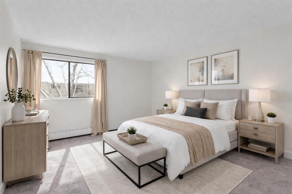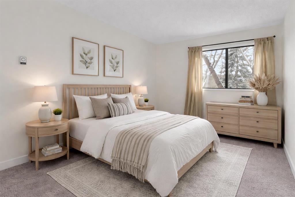 TOP FLOOR – Two-level condo in the heart of Varsity, offering a bright and spacious layout with extensive renovations throughout. The main level features a welcoming living area, a stylish kitchen with stone countertops and a tiled backsplash, in-suite laundry, and a large storage room. Upstairs are two generous bedrooms, including an oversized primary bedroom with a walk-in closet. Located on a quiet street just steps from Market Mall and minutes to the University of Calgary, Bowmont Park, Bow River pathways, Foothills Medical Centre, and Alberta Children’s Hospital. This well-maintained complex is supported by an active and attentive condo board and offers amenities, including an exercise room (recently updated with newer machines) and sauna for residents to enjoy. Ideal for first-time buyers, professionals, students, or investors looking for a prime NW Calgary location.