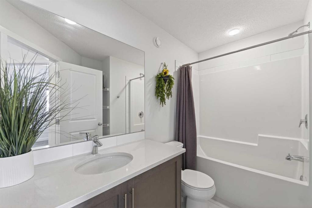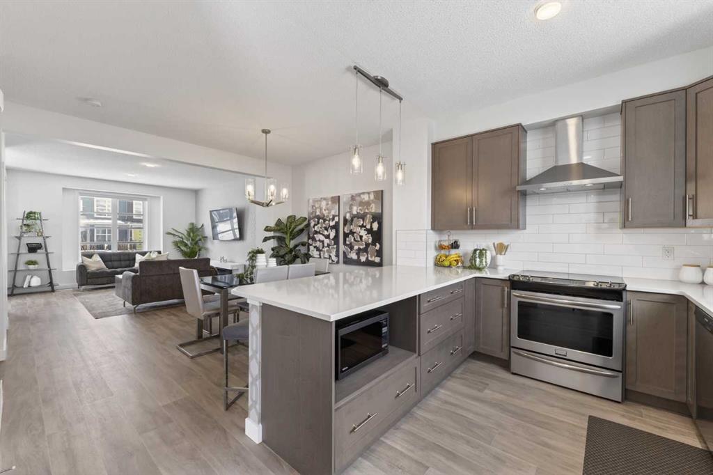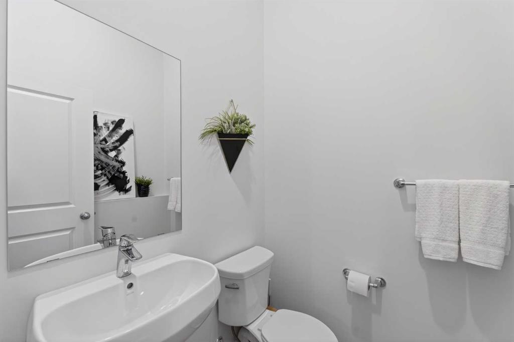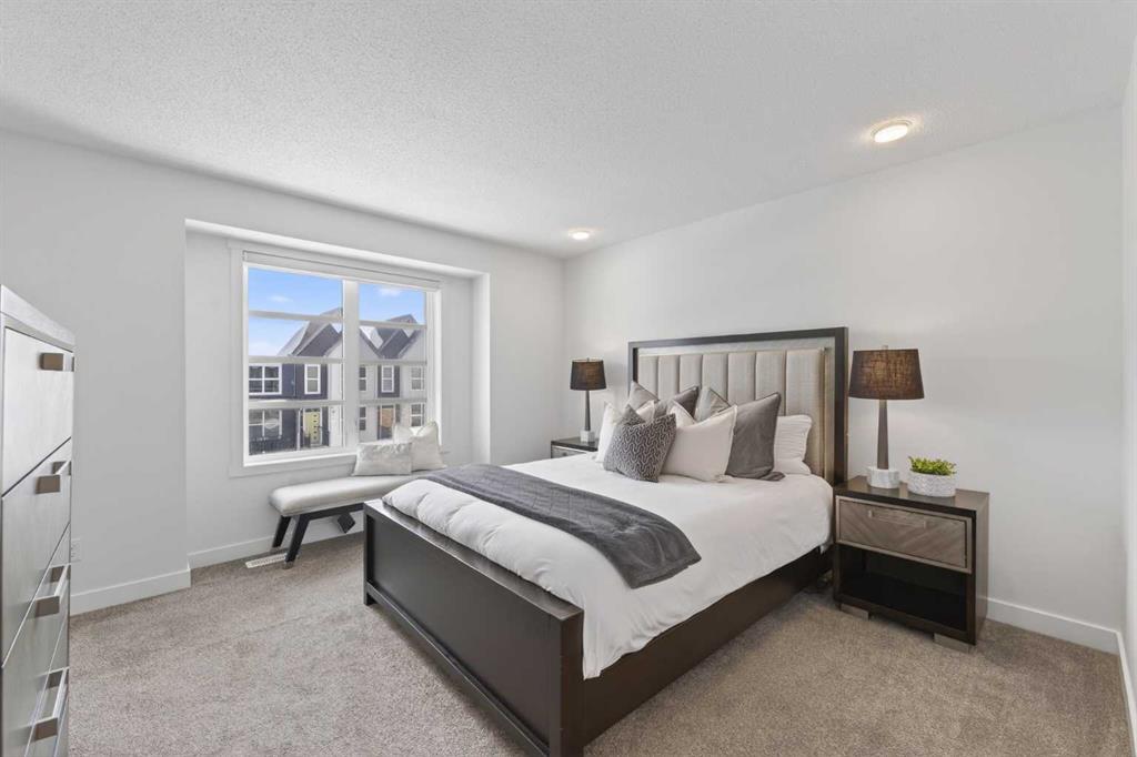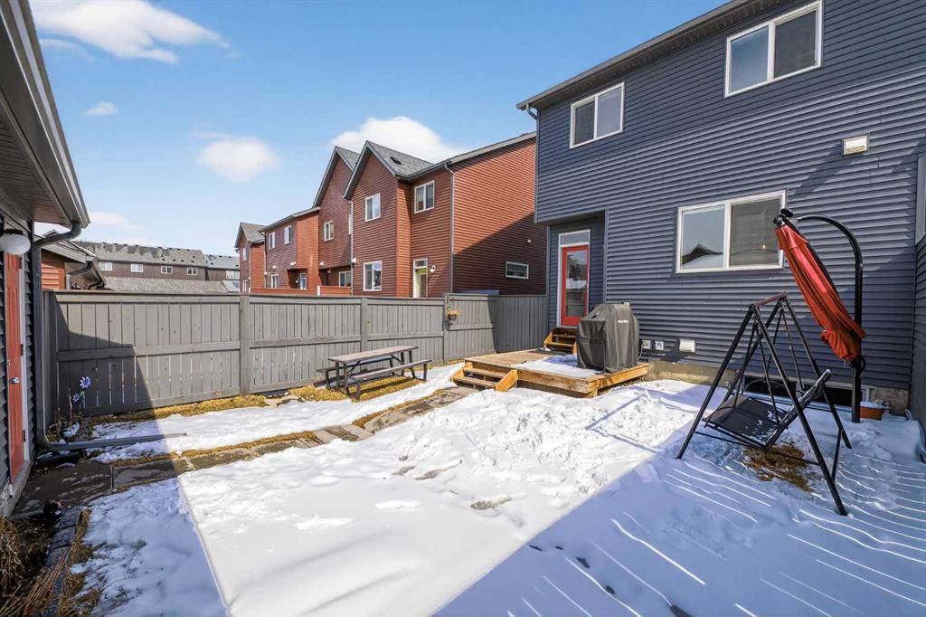 The kitchen is clean and contemporary with quartz countertops, stainless steel appliances, shaker style cabinetry, and a stylish white tile backsplash. A generous dining area and convenient 2 piece bath complete the main level. Upstairs offers a well-designed layout with a spacious primary bedroom featuring a walk-in closet and private 3 pc. ensuite, plus a second bedroom, dedicated office/flex space, full 4 pc bath, and convenient upper-floor laundry. The unfinished basement provides nearly 600 sq. ft. of future potential or excellent storage. The end unit means more light, more privacy, and better livability! Step outside to your fully fenced private backyard, complete with a detached double garage and located close to parks, pathways, and everyday amenities—ideal for first-time buyers, investors, or downsizers looking for low-maintenance living with NO CONDO FEES! Located in the growing community of Carrington, you’ll enjoy quick access to Stoney Trail, scenic walking paths, parks, and a beautiful re-naturalized wetland with lookout points. With future schools, shopping, and the planned Green Line LRT nearby, this is a smart opportunity for buyers.