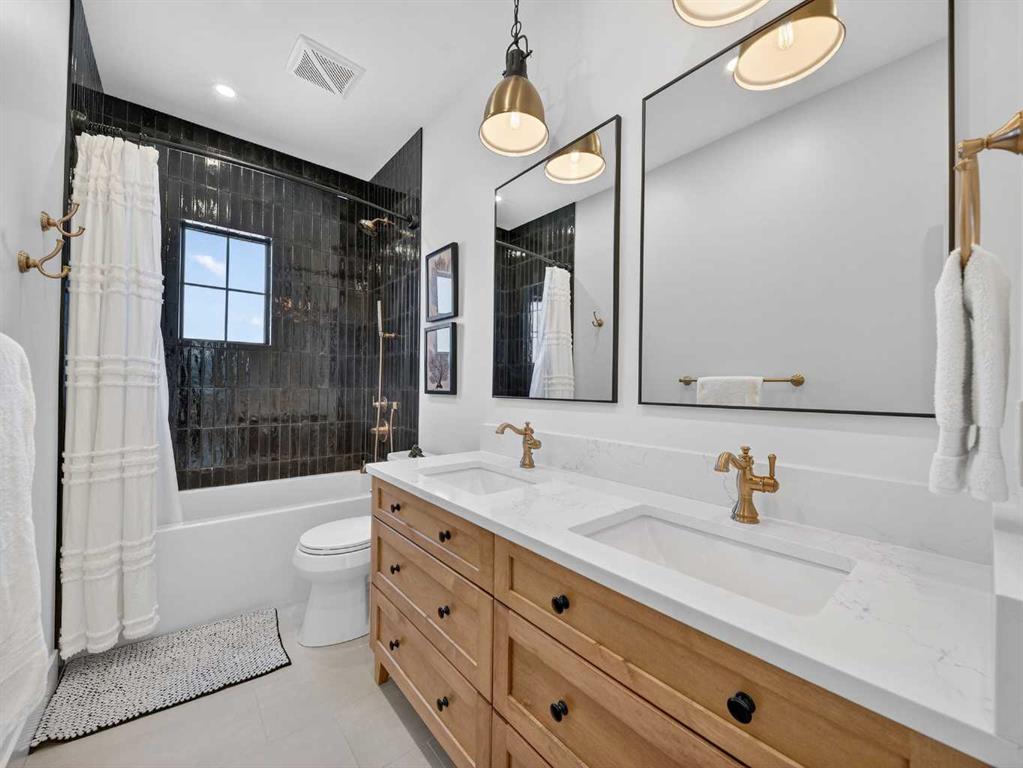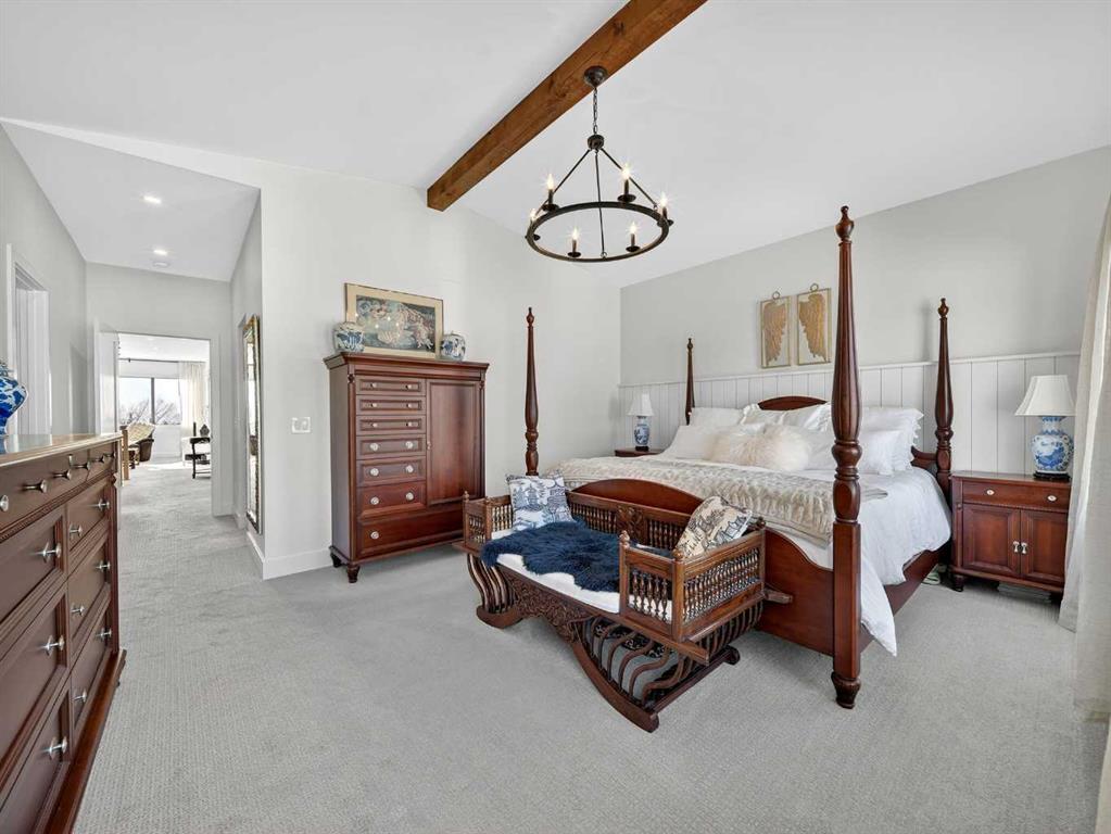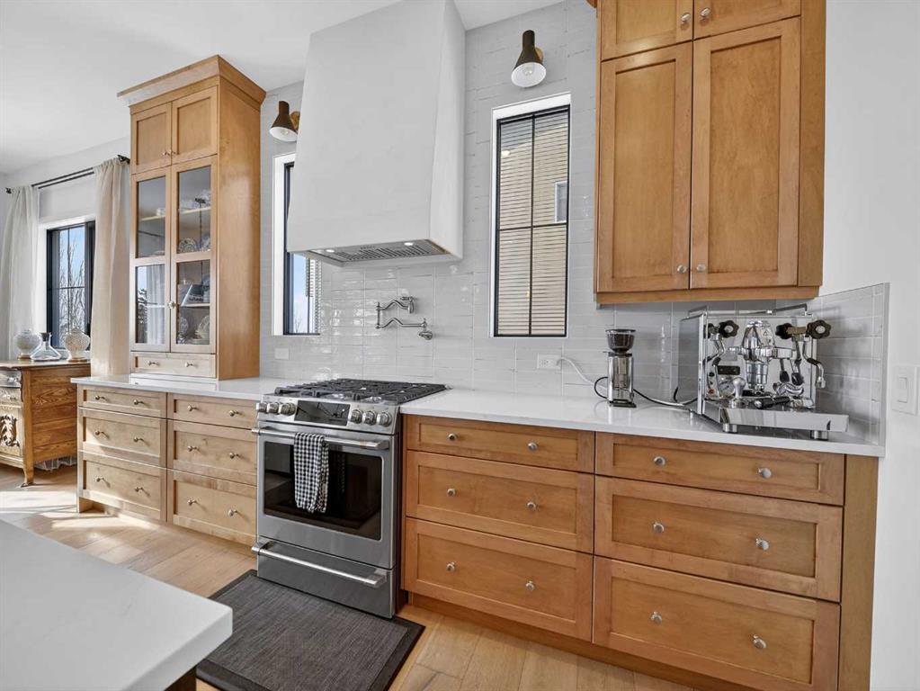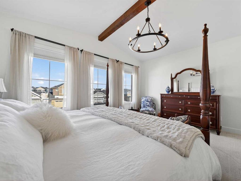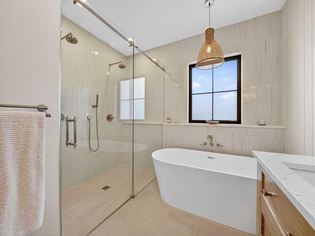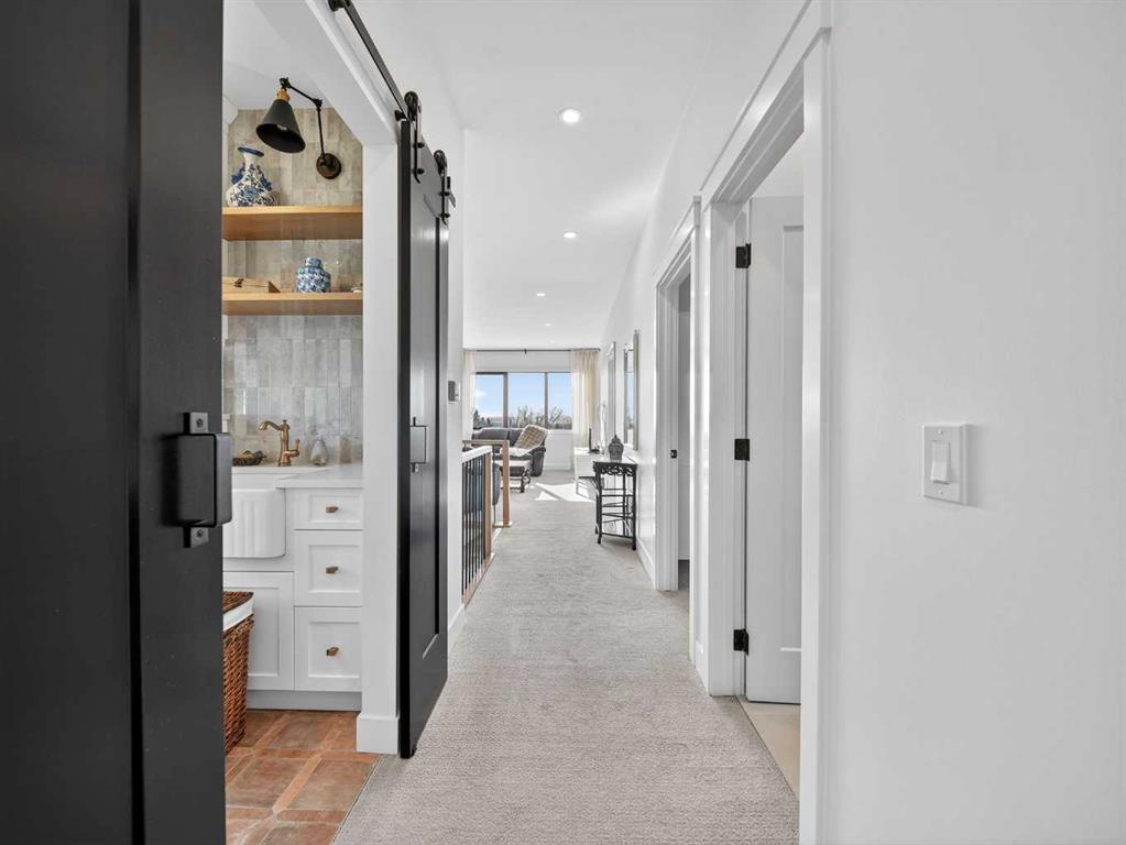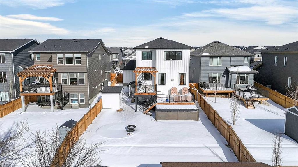 Welcome to an extraordinary custom-built farmhouse in the prestigious community of Wedderburn in Okotoks — a residence where refined craftsmanship meets timeless country elegance. From the moment you arrive, the home’s striking curb appeal, architectural charm, and warm, inviting presence create an unforgettable first impression. A gracious and spacious foyer welcomes you inside, immediately setting the tone for the thoughtful design carried throughout. Just off the entry, a beautifully appointed office offers both functionality and sophistication, complete with bespoke built-in cabinetry and a custom desk. As you continue into the heart of the home, the breathtaking kitchen unfolds in true European Tuscan farmhouse style. Floor-to-ceiling custom maple cabinetry, rich in detail and warmth, is perfectly complemented by white oak flooring that flows seamlessly throughout the main level. A generous central island anchors the space, while a statement custom hood fan, built-in appliances, and exquisite imported tile elevate the design. Expansive windows capture sweeping west-facing mountain views and southern vistas overlooking Okotoks. The adjoining dining and living areas are designed for both intimate evenings and elegant entertaining. A custom gas fireplace provides warmth and ambiance, while an abundance of windows invites natural light and frames the stunning landscape beyond. Completing the main floor is a thoughtfully designed mudroom featuring custom cabinetry and a pristine dog bath. Ascending to the upper level, you are welcomed by a stunning bonus room perfectly positioned to take full advantage of the south-facing views over Okotoks and the majestic Rocky Mountains to the west. Three spacious bedrooms offer comfort and refinement. The primary retreat is a sanctuary unto itself, showcasing a spa-inspired ensuite with dual vanities, a freestanding soaking tub, and an oversized custom walk-in shower. Two additional bedrooms share a beautifully appointed bathroom. The laundry room is exceptional — custom cabinetry and farmhouse sink create a space as beautiful as it is functional. The fully developed lower level elevates this home even further. In addition to a completely separate legal basement suite with its own private entrance, quartz countertops, stainless steel appliances, and stacking washer and dryer — the lower level also features an additional bedroom or multifunction room with a full private ensuite. Bright, airy, and finished to the same uncompromising standards as the upper levels, nothing has been overlooked. Outdoors, the property truly shines. Situated on one of the largest lots in Wedderburn, the expansive south-facing backyard offers endless opportunity for relaxation and recreation. A two-tiered deck with pergola creates the perfect setting for summer evenings, entertaining, and enjoying the open skies. Every detail of this residence has been meticulously curated, the epitome of luxury farmhouse living.