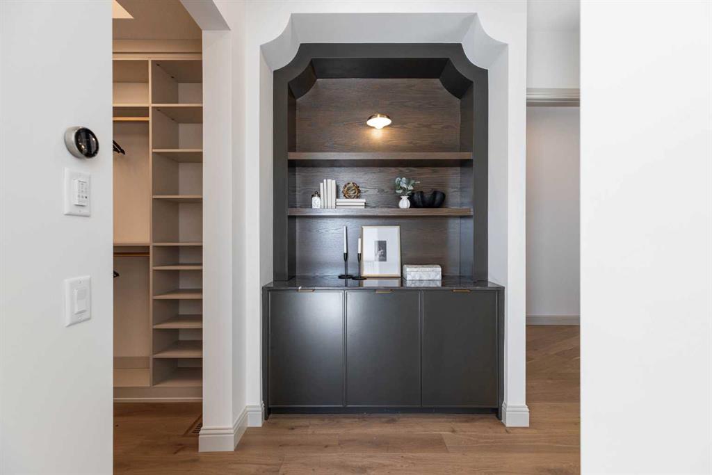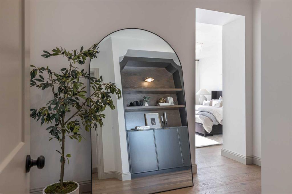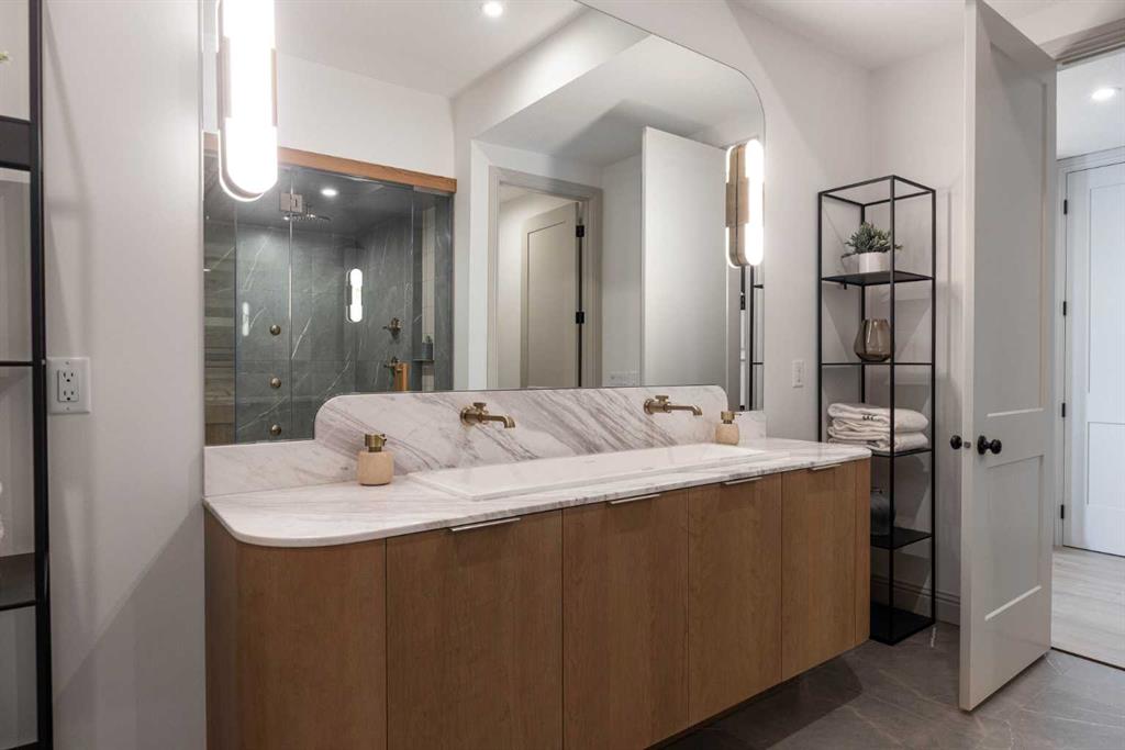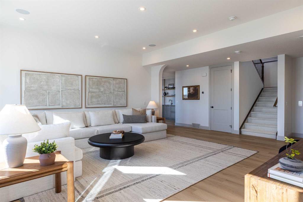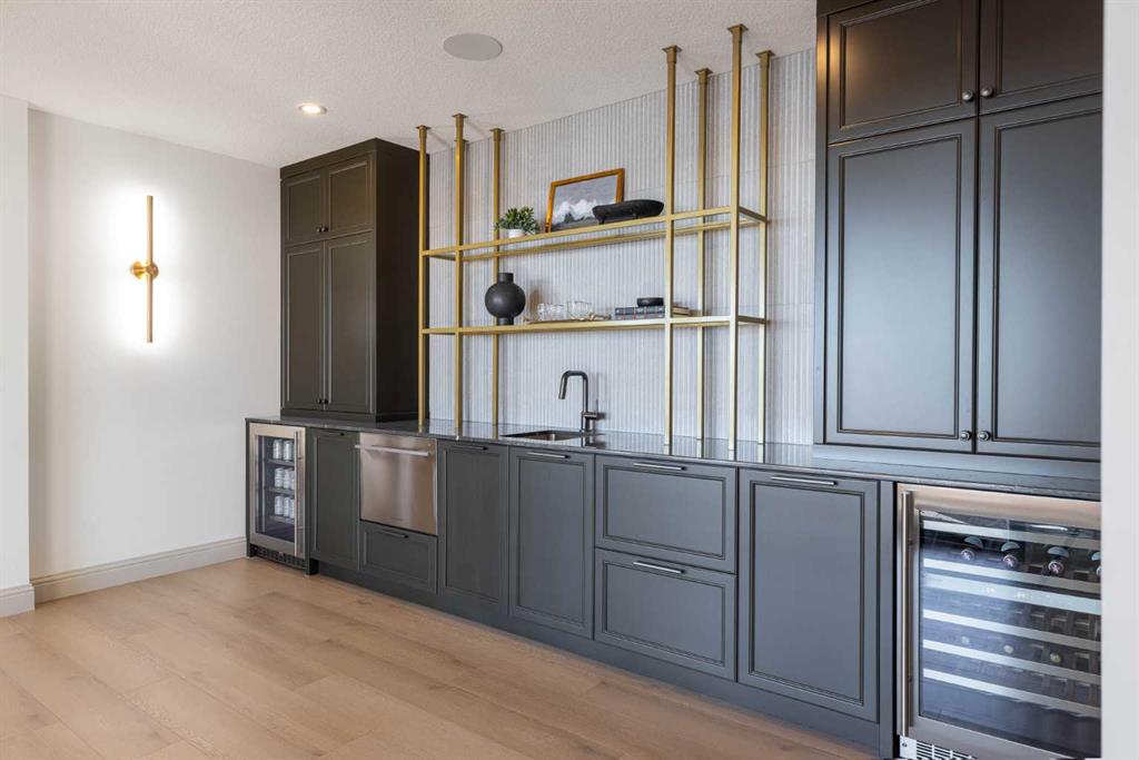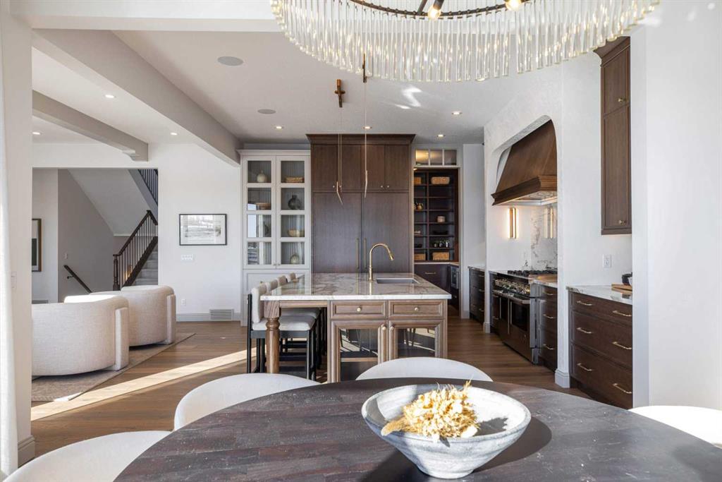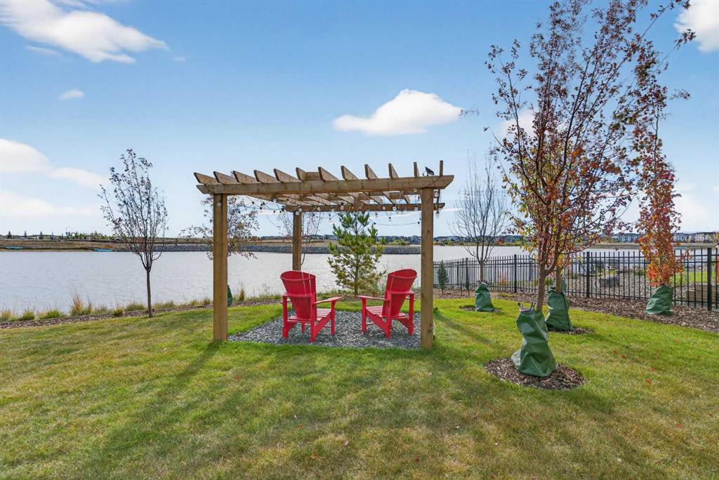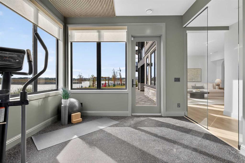 Exceptional opportunity to step into Harmony’s exclusive Lakeside lifestyle, in a uniquely crafted, walk-out Bungalow plus Bonus Loft – approximately 5000 sq.ft. of thoughtfully developed space. This spectacular home is ready for you now, at a price that cannot be matched by new builds on comparable lake front lots. Fully landscaped, the 0.34 Acre South-exposed plot includes a personal use dock. The iGuide Tour and Floor Plan Link, offers an enhanced experience, inside and out. This architectural masterpiece is structured across the width of the land by McDowell (built by Baywest Homes) to capture all surrounding water views, starting with full-height glass at the central foyer and lower courtyard, then additionally, from every principal room on all 3 levels. Both dominant floors are cleverly separated into sleeping suites and full bathrooms on one side, and common use areas on the other. Every space is tied together by stylish finishings that blend timeless elegance and a contemporary flair. Enjoy this retreat year-round, with 2 upper balcony decks (1 covered), and 4 direct exits to grade-level patio terraces (2 covered), plus beautiful pergola seating location by the water. The open Living and Dining spaces are set off by a striking Gourmet-quality eat-in Kitchen, with a massive Porcelain Island (seats 4 comfortably), a walk-through Butler’s Pantry (has a drawer Microwave and Beverage Cooler), a 6 burner Gas top Double-Range, Built-in Hood, paneled Fridge, Freezer and Dishwasher. The Primary Suite is a private space, with its own balcony, a vestibule Study/Dressing area, Walk-in Closet and 6 piece Ensuite completed by accessible flush-tiled shower. The upper Bonus Loft has its own 2-piece Bath and customized side-bar with another convenient chiller. The developed 1990 sq.ft. of the lower level has equally stunning water views, from a Rec/Theatre, Gym, Wet Bar/Wine Room gathering space, and two Bedrooms. Additional luxuries include a Sauna in the third full Bathroom, a 4-stop Elevator, elegant Powder Room, Locker-and-Bench Mud Room, wrapped cabinet Laundry with sink, and Triple Garage capacity, split for greater convenience, with a heated double bay. Numerous features are outlined in available brochures. Look for hidden gems, like second laundry hook ups, full sound and security, plus high end finishes with supplier names. The home is under Alberta New Home and Builder Warranties, to be transferred to new owners as applicable, not warranted by current owners.