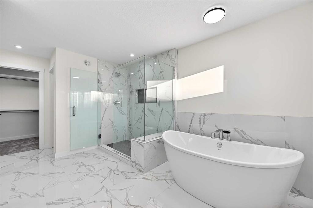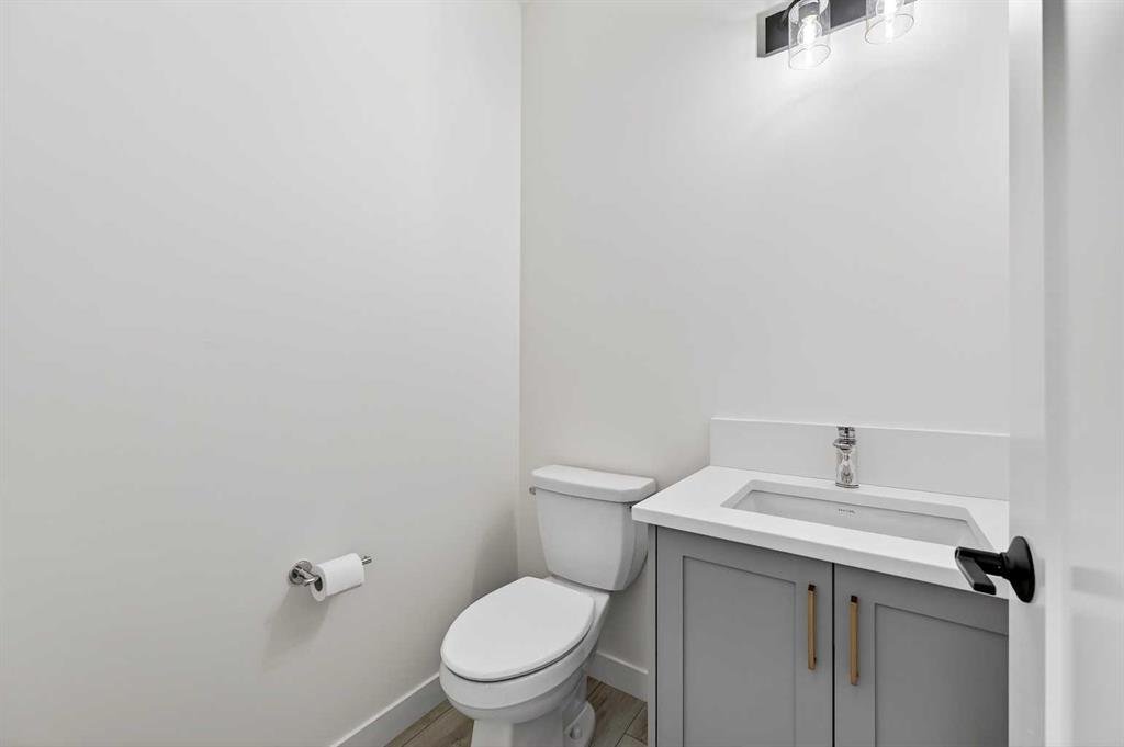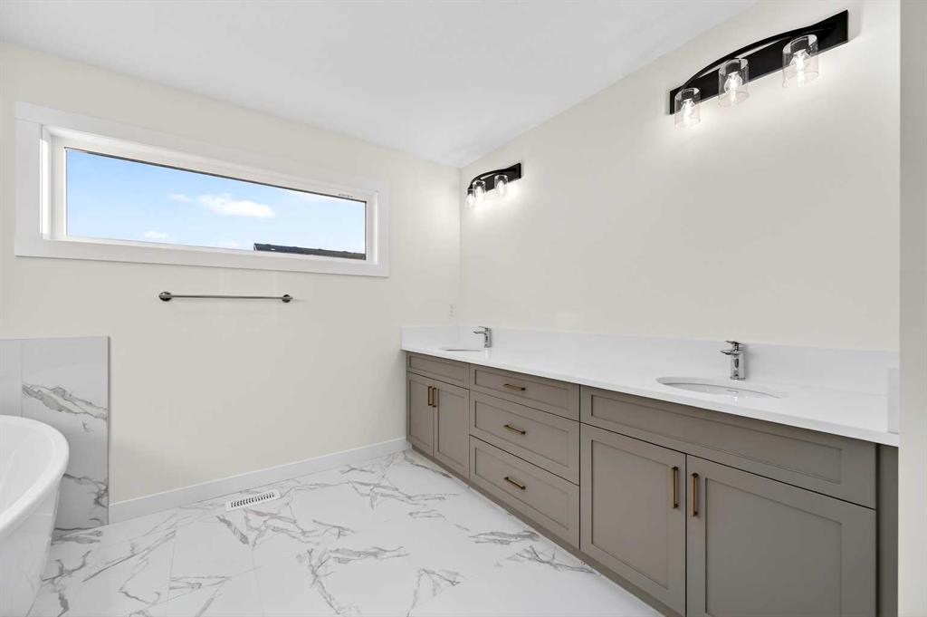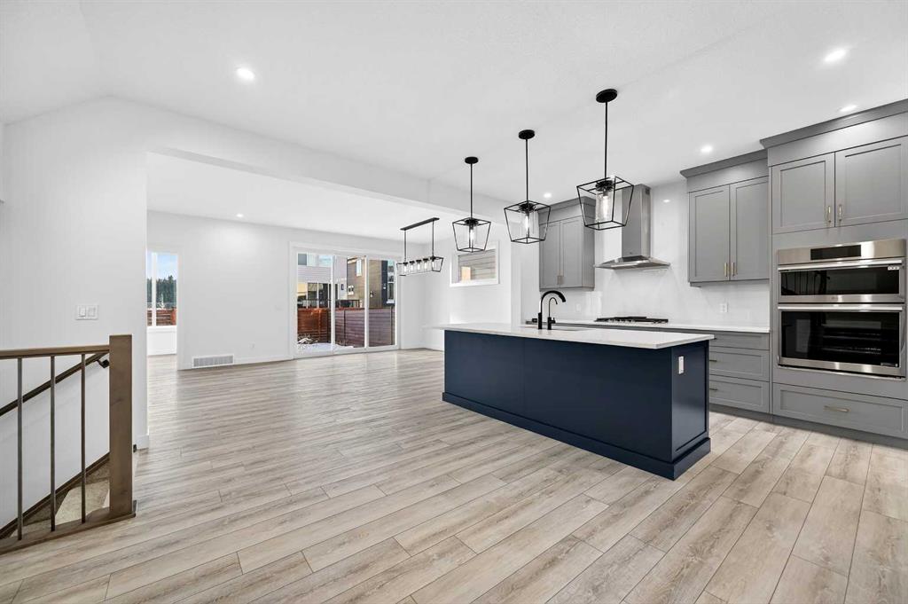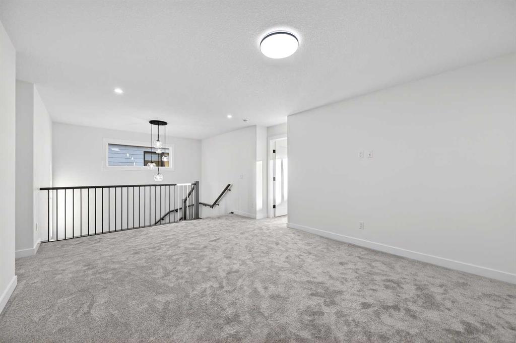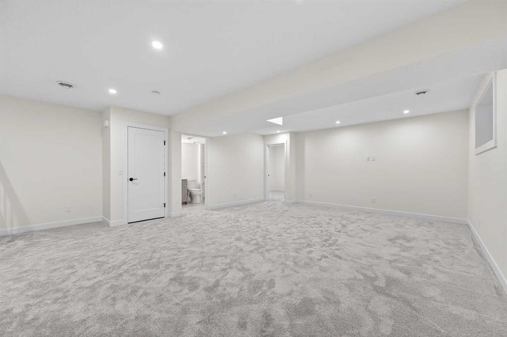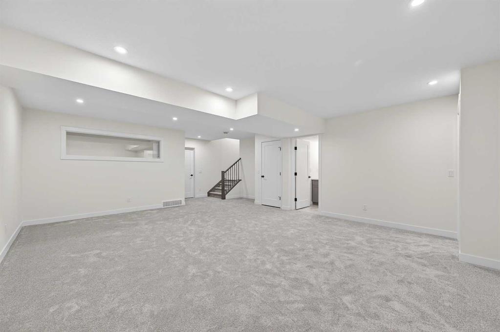 Welcome to 29 Rowmont Common NW, a stunning, sun-drenched residence that perfectly balances modern luxury with thoughtful family functionality. This south-facing home boasts a striking contemporary exterior with stone accents and a double attached garage. The bright, open-concept main floor features soaring ceilings, wide-plank flooring, and premium finishes throughout. The chef-inspired kitchen is a true showstopper, centered around a massive quartz island with a black undermount sink and designer pendant lighting. It comes fully equipped with a 5-burner LG gas cooktop, sleek chimney-style hood fan, integrated smart microwave and oven, and a full walk-through pantry. A dedicated breakfast nook with additional cabinetry and counter space is conveniently located directly beside the smart refrigerator. For the remote professional, a private main-floor office is situated near the entrance, flanked by a front-door closet and a functional half-bath. The living area is anchored by a sleek Gas Metal Fireplace, and the main level provides ample storage with direct mudroom-style access to the garage. Ascend the carpeted stairs with open railing to a versatile central bonus room, perfect for family movie nights. The Primary Suite serves as a sanctuary, featuring a private 4-piece ensuite with dual sinks and a spacious walk-in closet. Uniquely, the second bedroom also features its own 4-piece ensuite and walk-in closet, making it an ideal “junior suite,” while a third generous bedroom sits nearby. The dedicated laundry room is a dream, complete with a washer/dryer, folding table, and built-in storage. The professionally finished basement extends your living space even further with two additional bedrooms, a large entertainment area, and a modern 3-piece bath. The utility room is meticulously maintained, featuring a Reverse Osmosis water system, high-efficiency furnace, and electrical panel. Outside, the south-facing backyard is a blank canvas, offering maximum sunlight throughout the day, perfect for a future custom deck. With titled-to-the-ceiling finishes and large windows throughout, this home is flooded with natural light and ready for you to move in