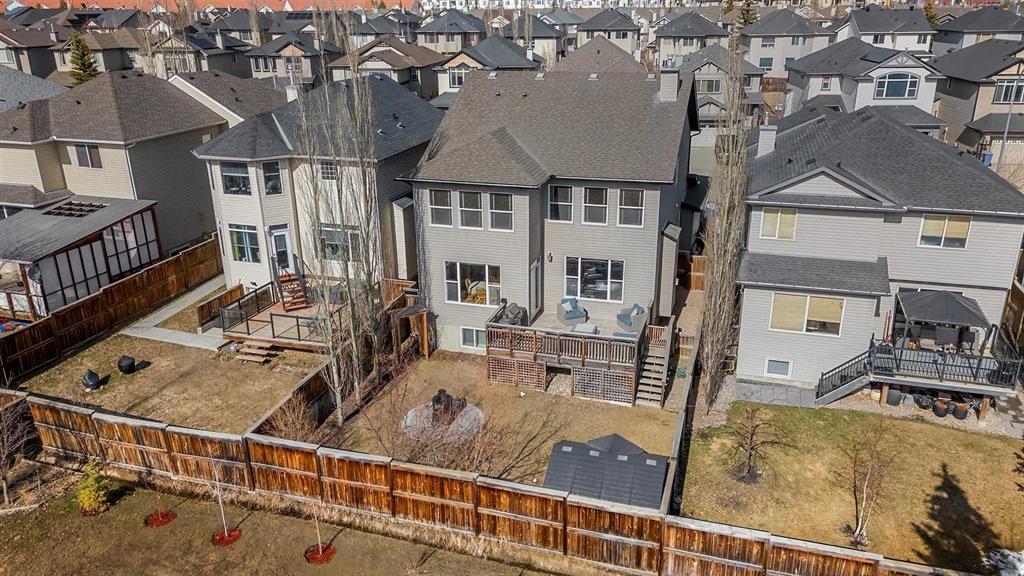 Finally, an exceptional opportunity to own a spacious and versatile home in one of Calgary’s most sought-after northwest communities. Royal Oak is complete with walking paths that connect to parks where little ones learn to ride bikes, top-rated schools are just minutes away on foot, and the Shane Homes YMCA at Rocky Ridge gives everyone from toddlers to grandparents a place to swim, skate, and stay active all year long. Quick Stoney Trail access means you can be anywhere in the city in minutes, yet coming home to this quiet, tree-lined street always feels like leaving the city behind. The Rocky Mountains sit on the horizon as a daily reminder that an extraordinary quality of life is simply part of living here. Step inside and you immediately feel the scale this home offers with over 3,500 square feet of developed living space. A formal dining room with coffered ceiling and chandelier is where milestones will be celebrated, and holiday traditions will take root for years to come. The open-concept kitchen flows naturally into a bright eating nook and a comfortable family room anchored by a gas fireplace, creating the kind of connected, inclusive space where parents can cook while keeping an eye on the kid’s doing homework at the island. Breakfast bar seating, a glass-panel pantry, and stainless appliances make this kitchen genuinely functional for busy weekday mornings and relaxed weekend cooking alike. Sliding doors from the nook open directly onto the rear deck, making summer barbecues & outdoor dinners an effortless extension of daily life. A dedicated main floor office means working from home does not have to compete with living space, and the thoughtfully designed mudroom with built-in bench, cubbies, and coat hooks is the kind of detail that keeps a busy household running smoothly every single day. Upstairs, 5 bedrooms mean no one must share unless they want to. The primary bedroom is a genuine retreat, connecting to an ensuite with double vanity, deep soaker tub, glass-door shower, and a walk-in closet. The 4 additional bedrooms each offer their own character and space, giving kids and teenagers room to study, create, and truly make their own. A double-sink main bathroom keeps the morning rush manageable, and the upper-level laundry room with front-load appliances is one of those practical touches that households with children quickly wonder how they ever lived without. The fully developed lower level adds significant room and features a large open recreation room perfect for movie nights, playdates, or a teen hangout, a dedicated home gym area, a fifth bedroom for guests or extended family, and a full bathroom. Outside, the fully fenced backyard gives children a safe place to play freely while adults relax on the generous deck with outdoor seating and a gas BBQ. The circular paver patio with a chiminea creates a natural gathering spot for weekend evenings spent making memories around the fire. A storage shed keeps bikes and seasonal gear neatly tucked away.