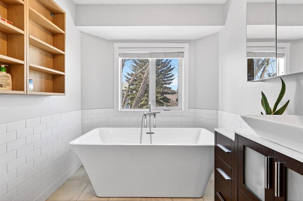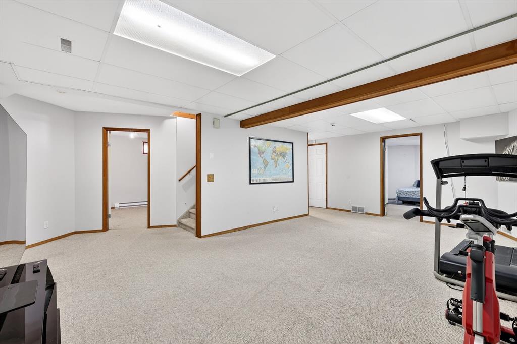 Welcome to your new home located just minutes Sundance lake ! This stucco finished home is perfect for a growing family offering 5 bedrooms and over 3000 square feet of living space in the heart of Sundance. One feature that could be perfect for multi-family living is the main floor office/den that can function as a full 6th bedroom. A 3 piece bathroom with full shower is just outside the door of this perfect space. A great option for a nanny suite or a flexible space if you need a space for elderly parents or family. So handy to have the bedroom and bathroom with shower all on the main level. Not often will you find an inner city home in a lake community where you can fit a full RV Trailer in your backyard! Or maybe a work trailer, quads, skidoos or extra vehicles. So many options. This home has had several improvements and updates over the years. Brand new roof last summer, heated and insulated garage, Rinnai instant hot water heater, triple pane windows upstairs, laundry on both the main and lower levels, new tile flooring on the main level, updated master en suite with custom shower and soaker tub, and a 5 pc main bath upstairs. The 5 pc is perfect for kids with 2 sinks! The main level has huge vaulted ceilings and big windows with a large family room and formal dining area. The front living room has a cozy wood burning fireplace. The lower level has 2 good sized bedrooms, family room and tv area, 3 pc bath and large storage room. The backyard is finished with flagstone patio stones with the the focal point being the unique tree and bench area. Cool space to host parties, or re-design with some more grass or turf. No RV, well you’ve now just added a lot more space to your backyard. Great location in a fabulous lake community. This is your chance to find a get into a large home with the opportunity for multi-family living steps away for the lake.