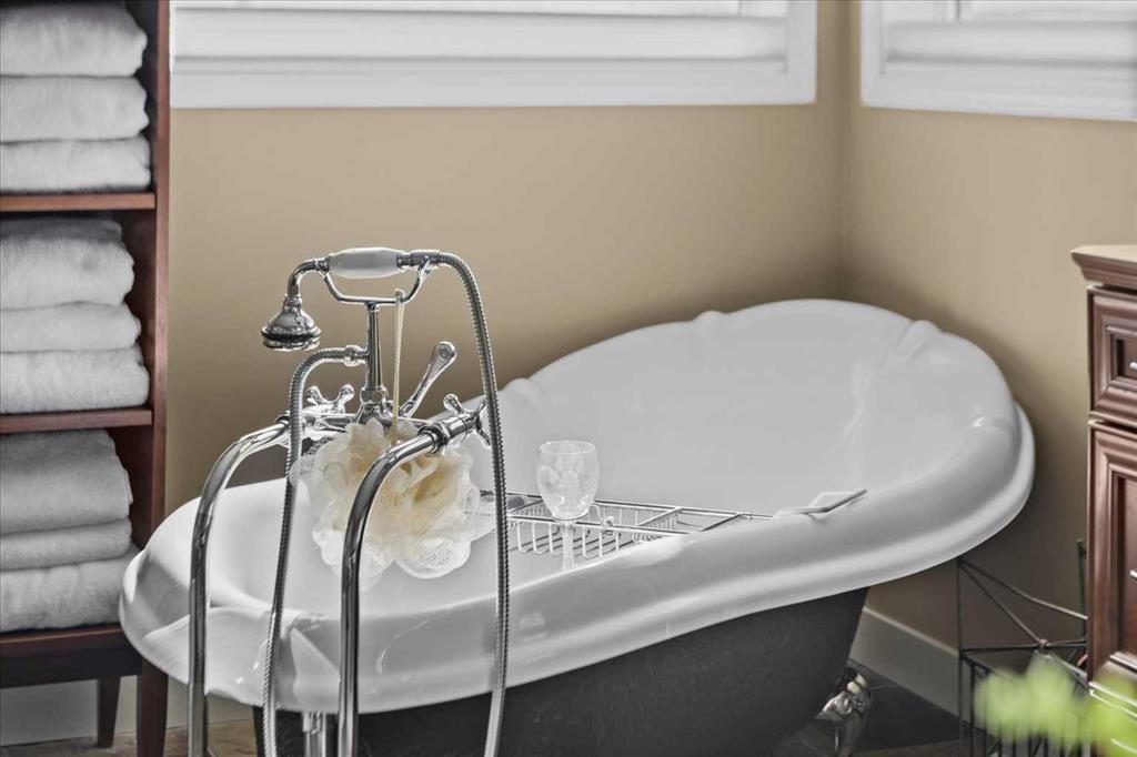 Upstairs, the primary bedroom is genuinely spacious, with views that make mornings worth lingering in. The ensuite features a 6-foot clawfoot bathtub and separate shower, with a roomy walk-in closet rounding out the retreat. Two additional bedrooms complete the upper level.