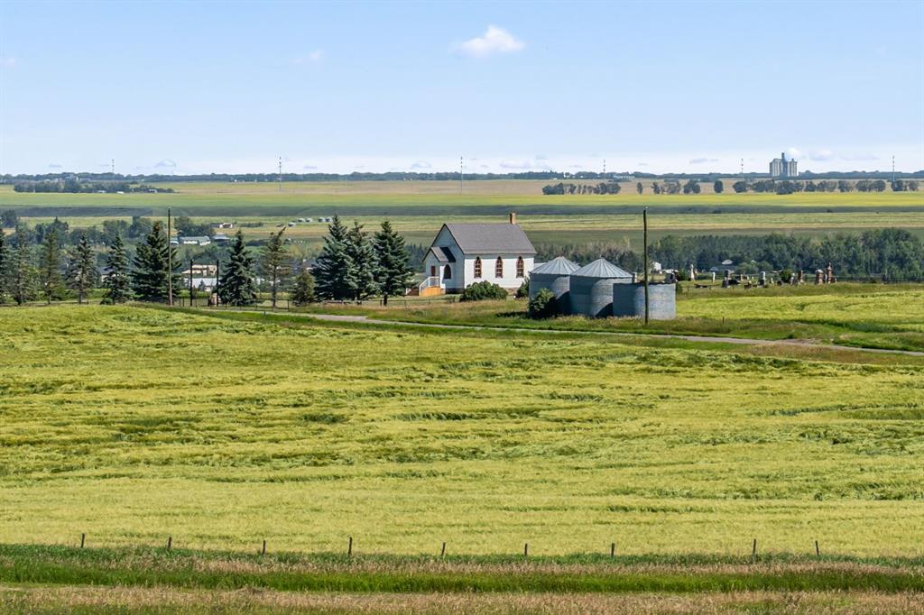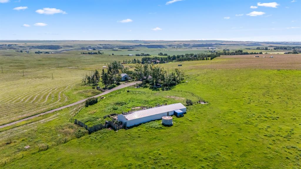 Hosting the highest hilltop for miles, this 60-acre property offers panoramic, 360° views—including the mountains to the west and the city to the north and the adorable Davisburg church across the road. Located just minutes from Calgary and Okotoks, it’s a setting that combines rural tranquility with urban convenience. The 1960’s walk-out bungalow is solidly built and ready for your customization with new shingles in 2017. Inside, you’ll find 4 bedrooms and 3 bathrooms, a gas fireplace in the living room and an efficient wood-burning stove downstairs. The solid hardwood flooring on the main level flows through to ceramic tile in the kitchen and bathrooms. The lower level features full egress windows in the basement bedrooms for natural light and safety. The oversized double garage has room for toys, vehicles and work benches. The property boasts a reliable well with a new pump and expansion tank installed in 2023. A large multi-purpose outbuilding sits on an expansive concrete pad, combining enclosed indoor space with animal shelters—ideal for agricultural, equestrian, or hobby farm uses. The potential is limitless in this special property.